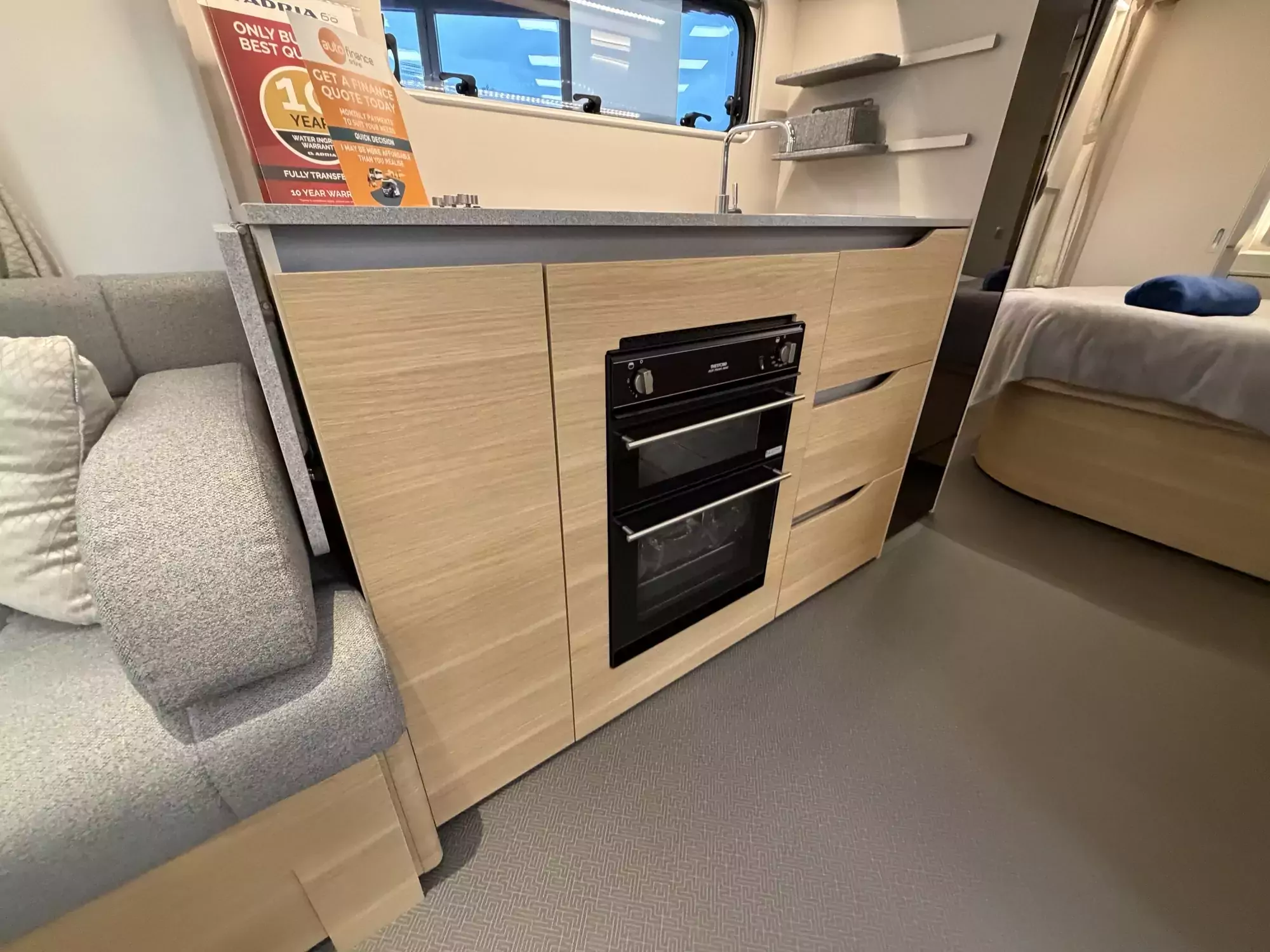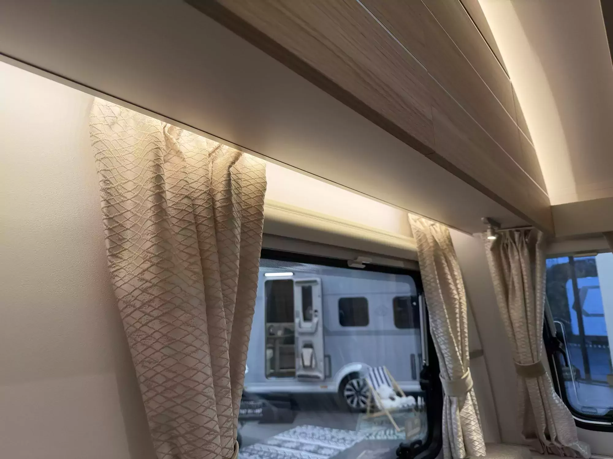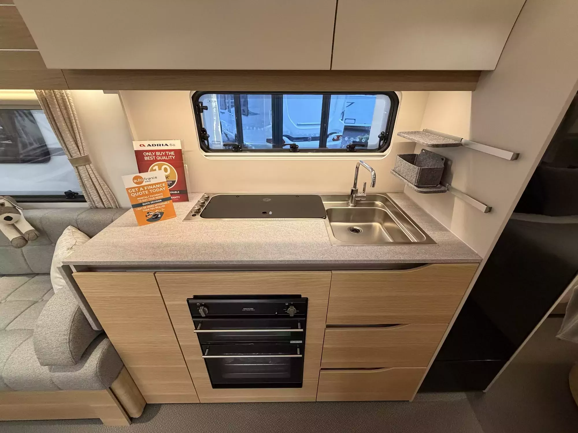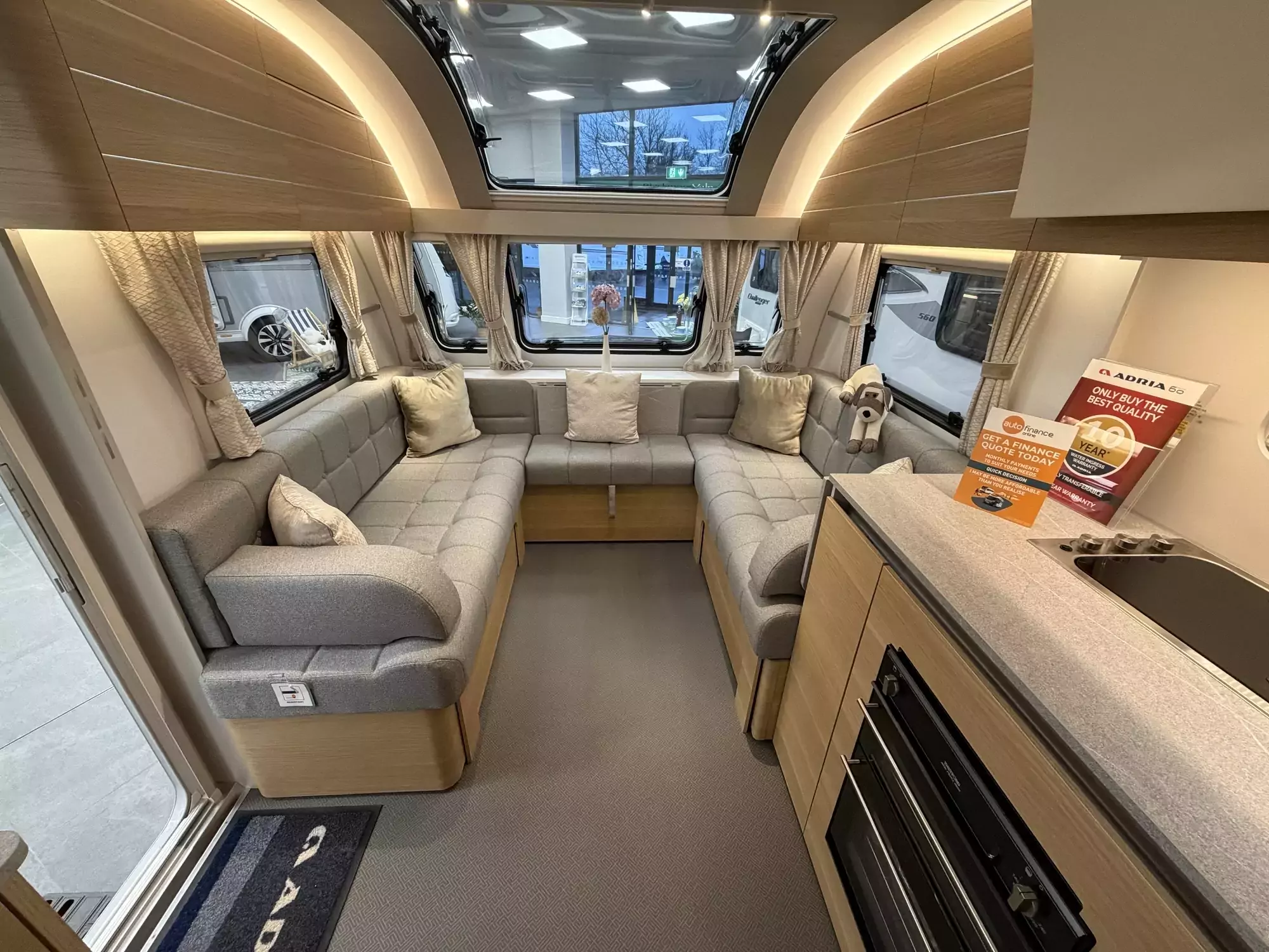 You will find sleek Adria body built to Thermo-build standards with advanced insulation which has been tested under extreme conditions of temperatures from -40 to +_60 degrees C, on an ALKO chassis complete with AKS stabilising hitch, Alloy wheels with Continental tyres and energy efficient LED lights inside and out.