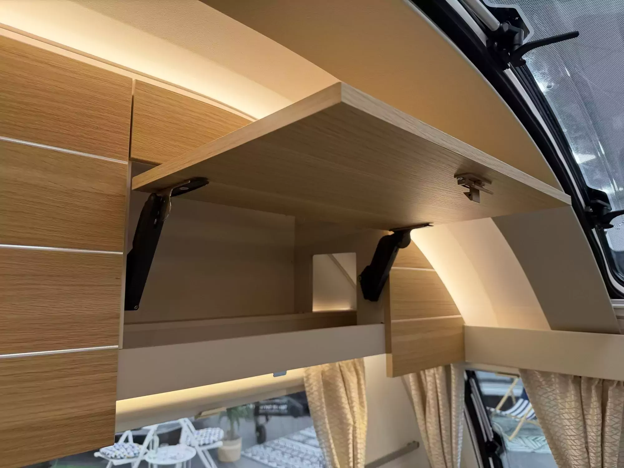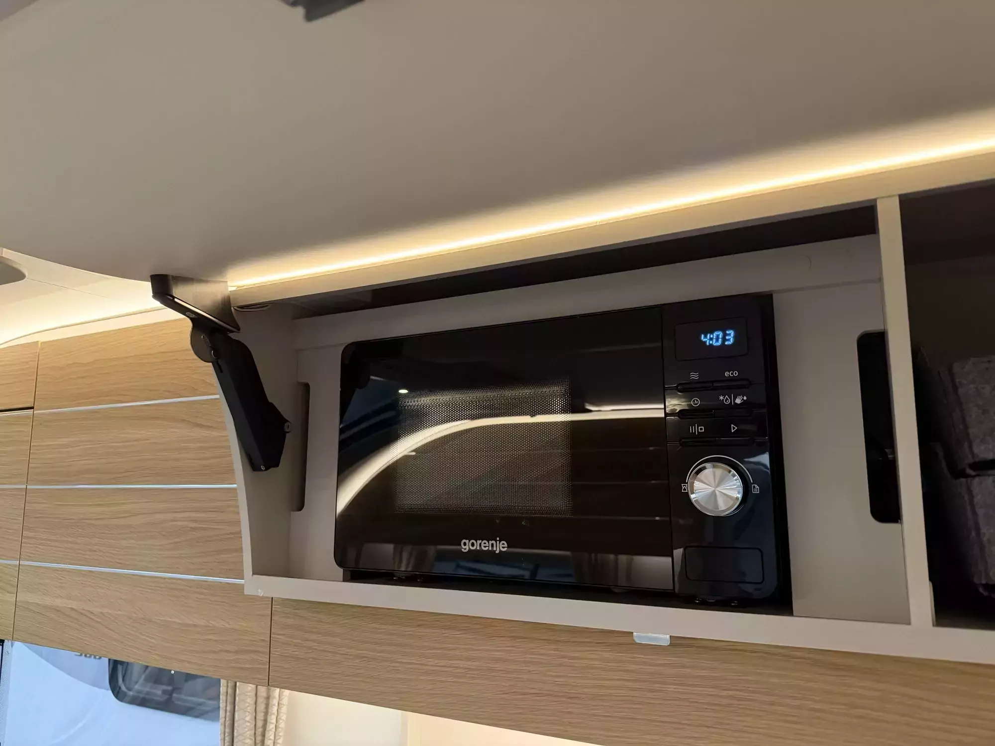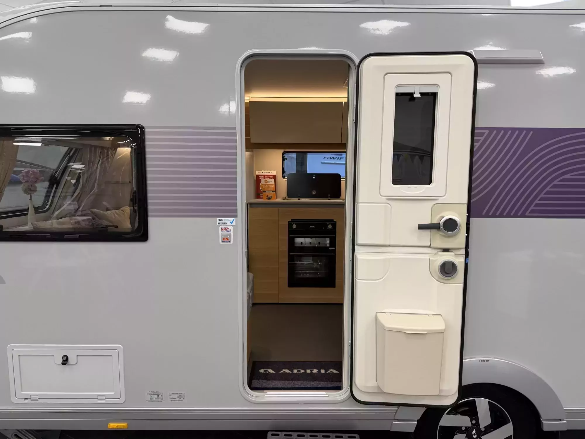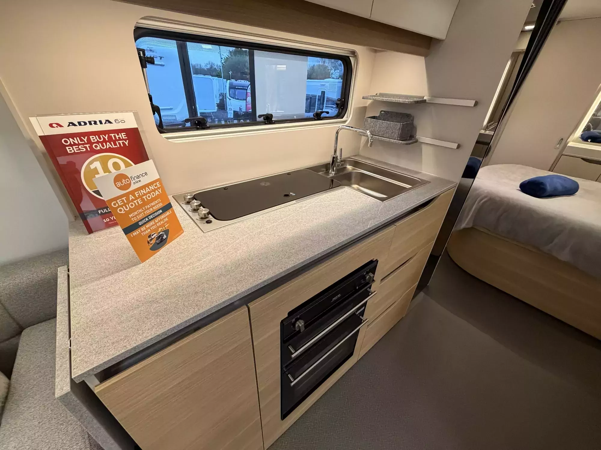 You will find sleek Adria body built to Thermo-build standards with advanced insulation which has been tested under extreme conditions of temperatures from -40 to +_60 degrees C, on an ALKO chassis complete with AKS stabilising hitch, Alloy wheels with Continental tyres and energy efficient LED lights inside and out.