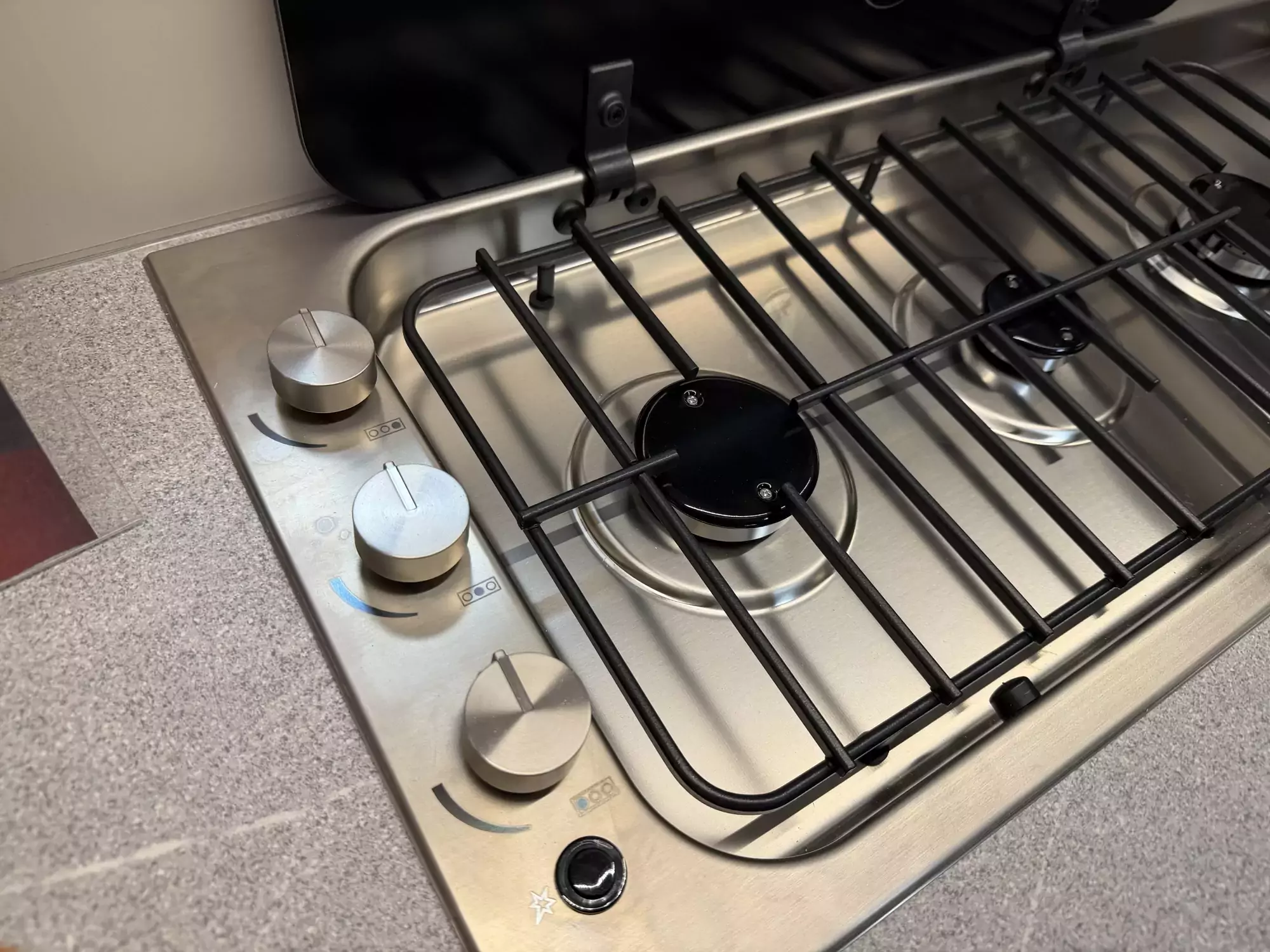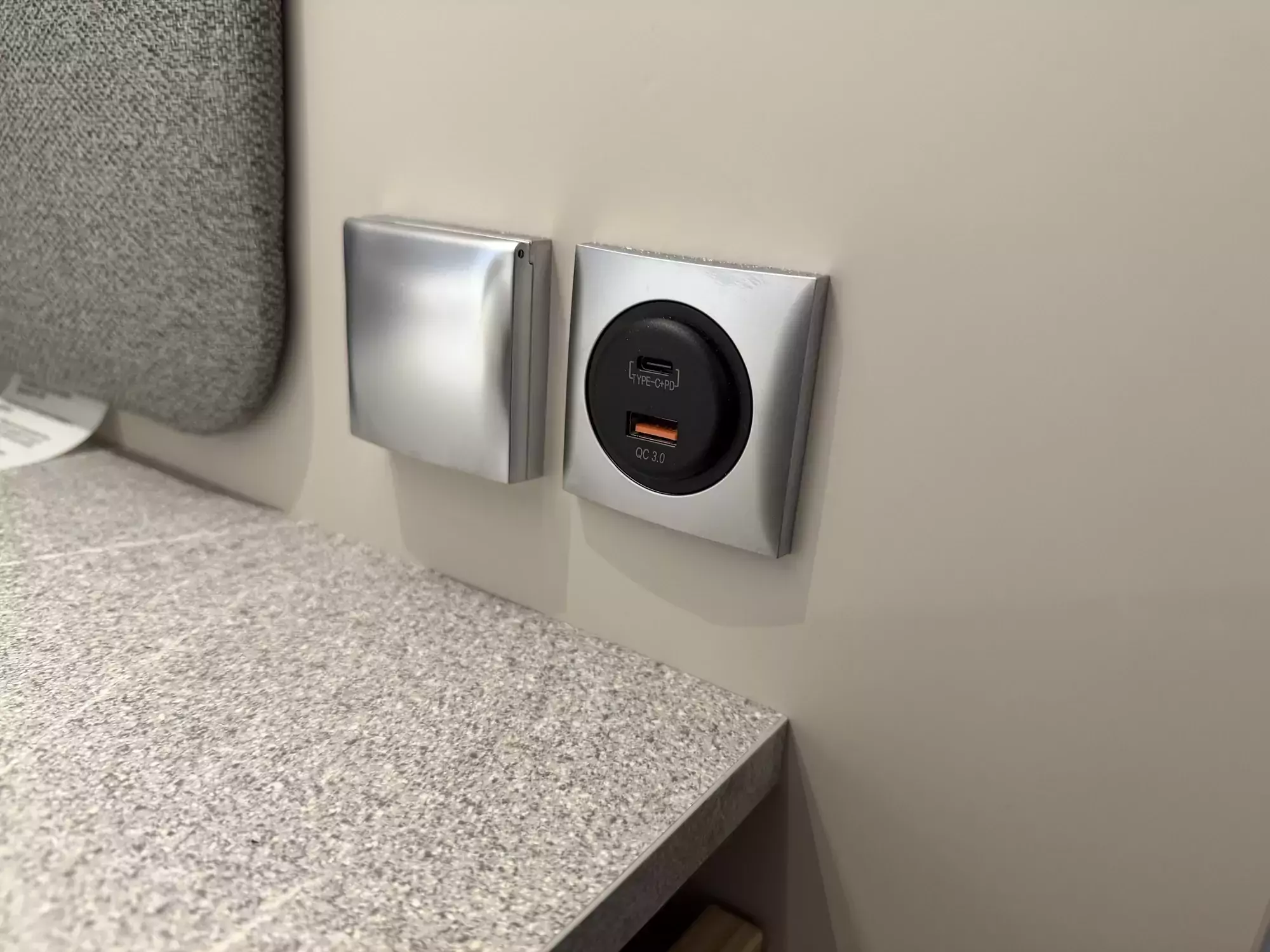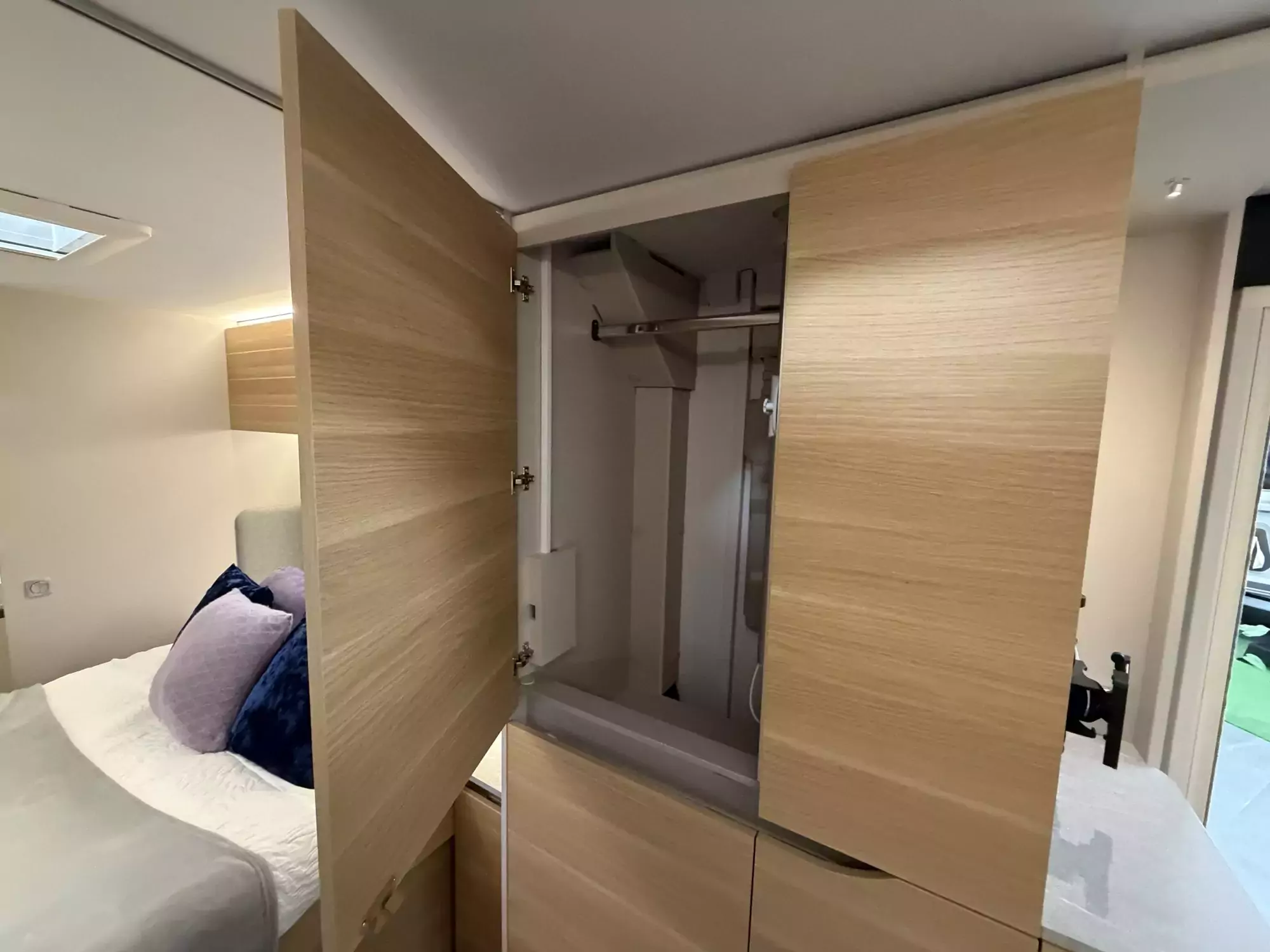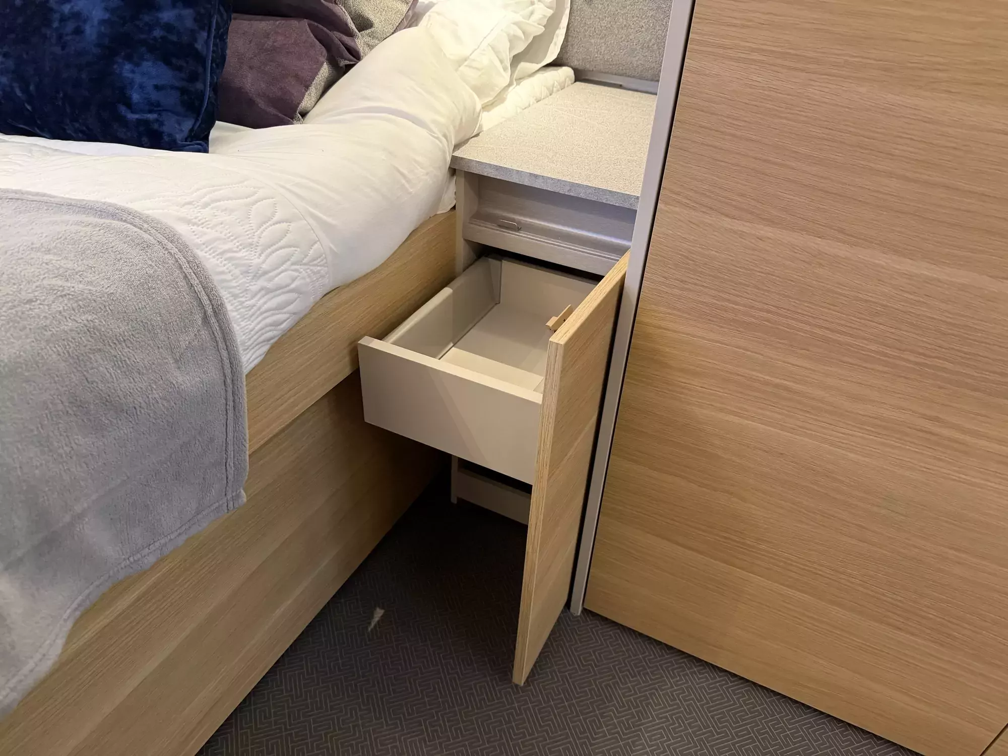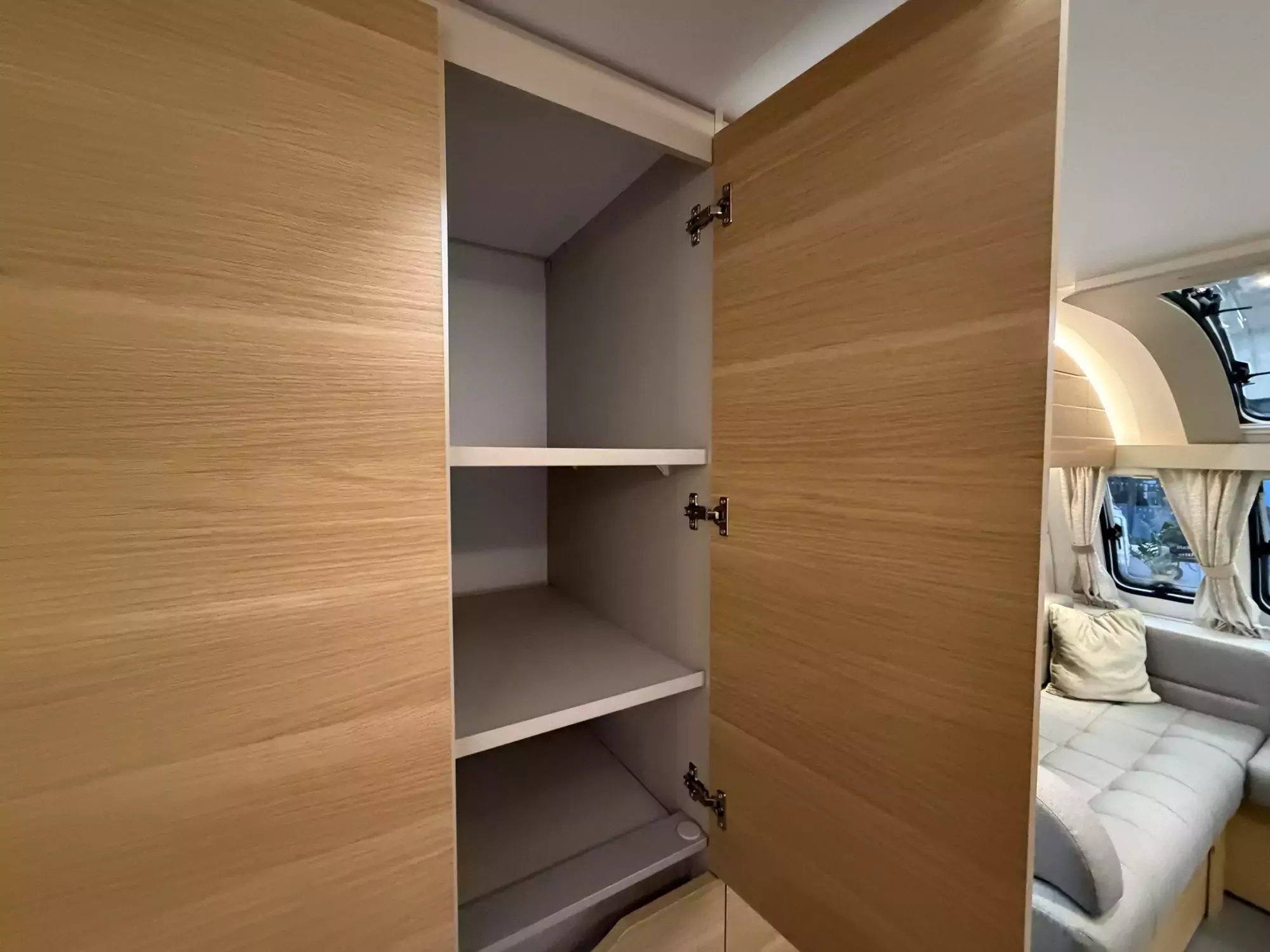 With Truma adjustable heating throughout and a Bluetooth sound system, you can kick back and relax in the comfortable living space, where the parallel benches easily convert to a generous sized double bed if needed or keep as your lounge area for relaxing and dining using the conveniently tucked away freestanding table.