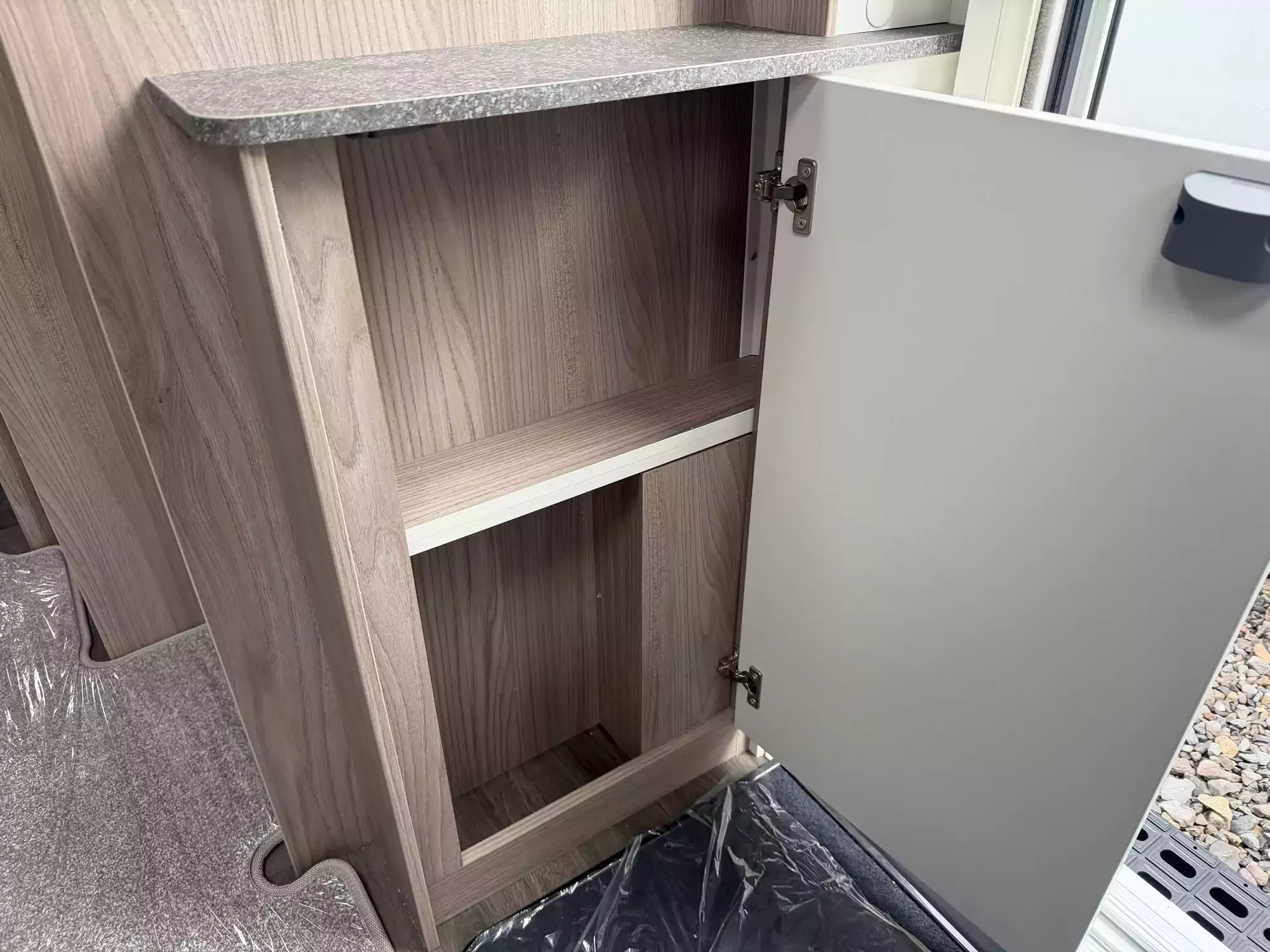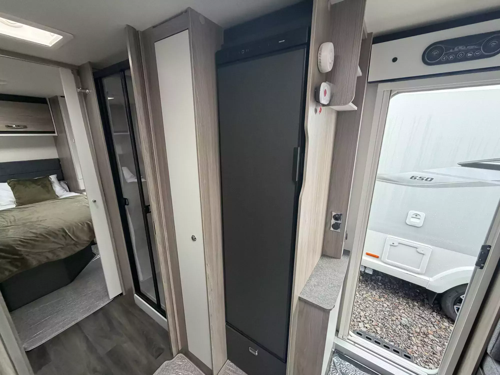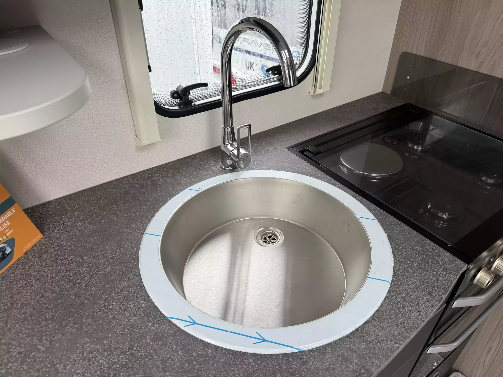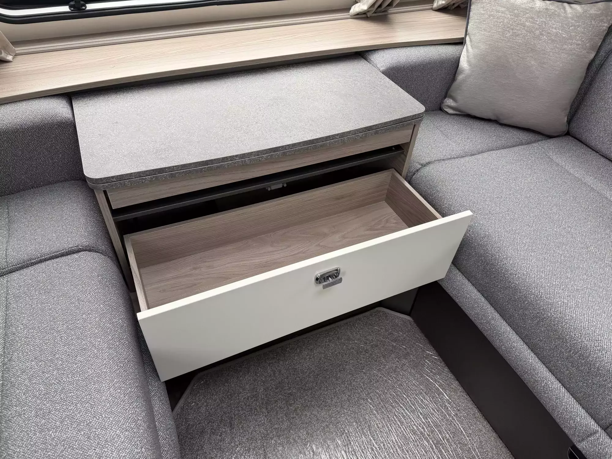 The well-appointed kitchen includes a 4-burner hob, oven and grill, microwave, stainless steel sink, and large fridge freezer, making it easy to cook proper meals on the move. Quality worktops, soft-close cabinetry, and smart LED lighting add a premium finish throughout.