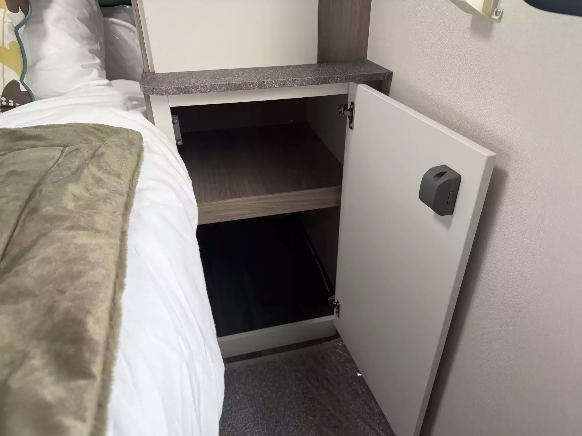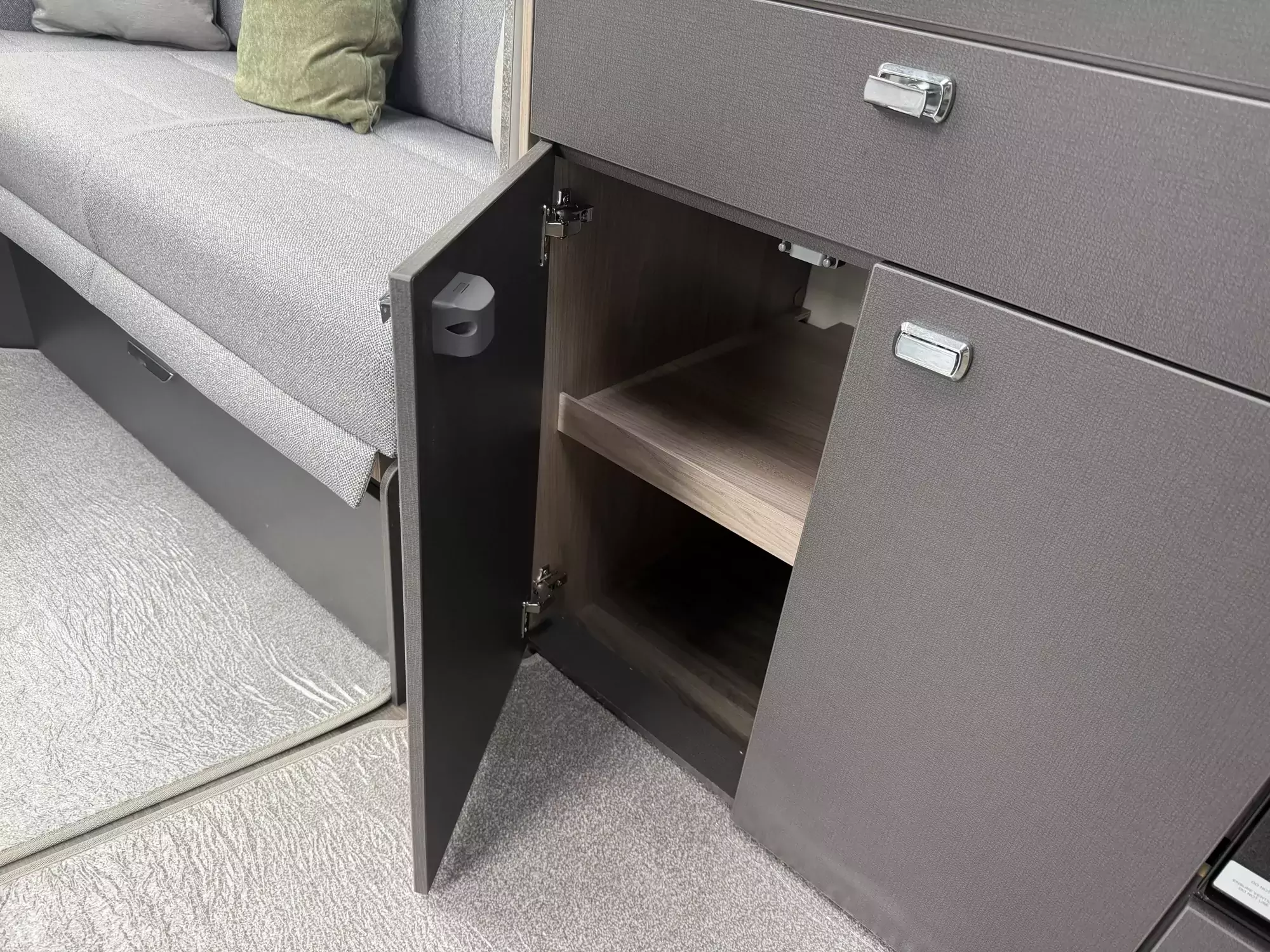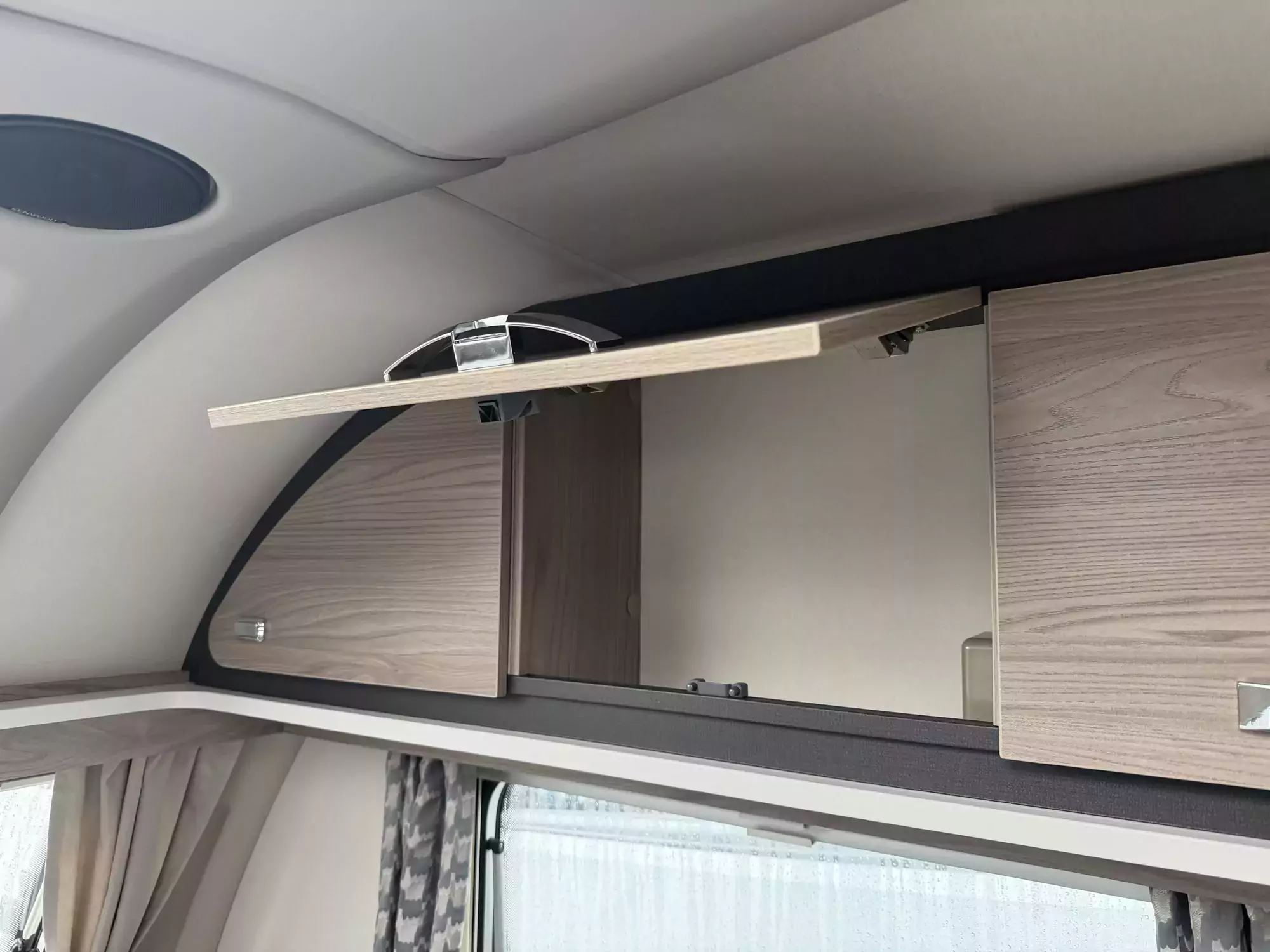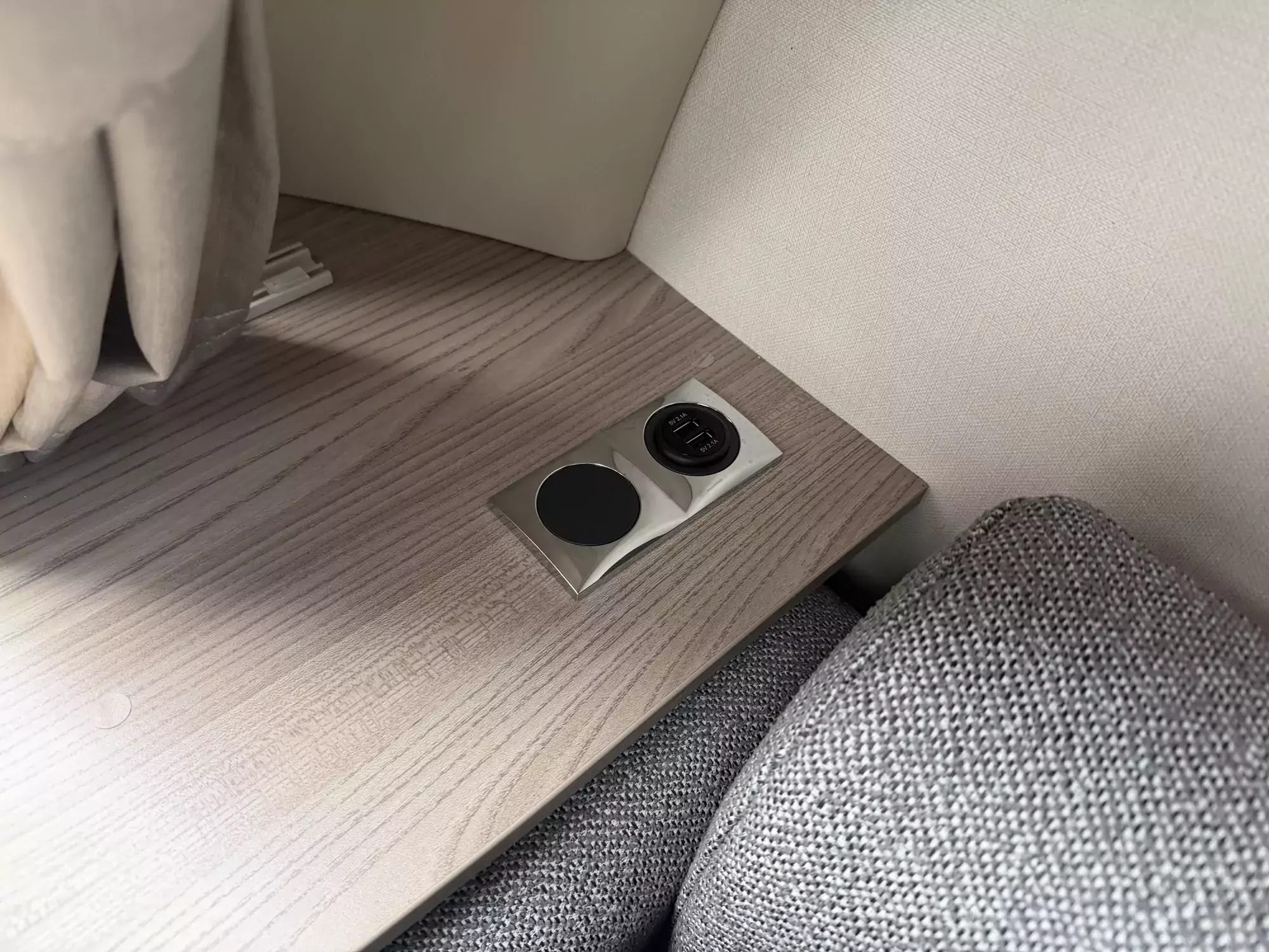 The well-appointed kitchen includes a 4-burner hob, oven and grill, microwave, stainless steel sink, and large fridge freezer, making it easy to cook proper meals on the move. Quality worktops, soft-close cabinetry, and smart LED lighting add a premium finish throughout.