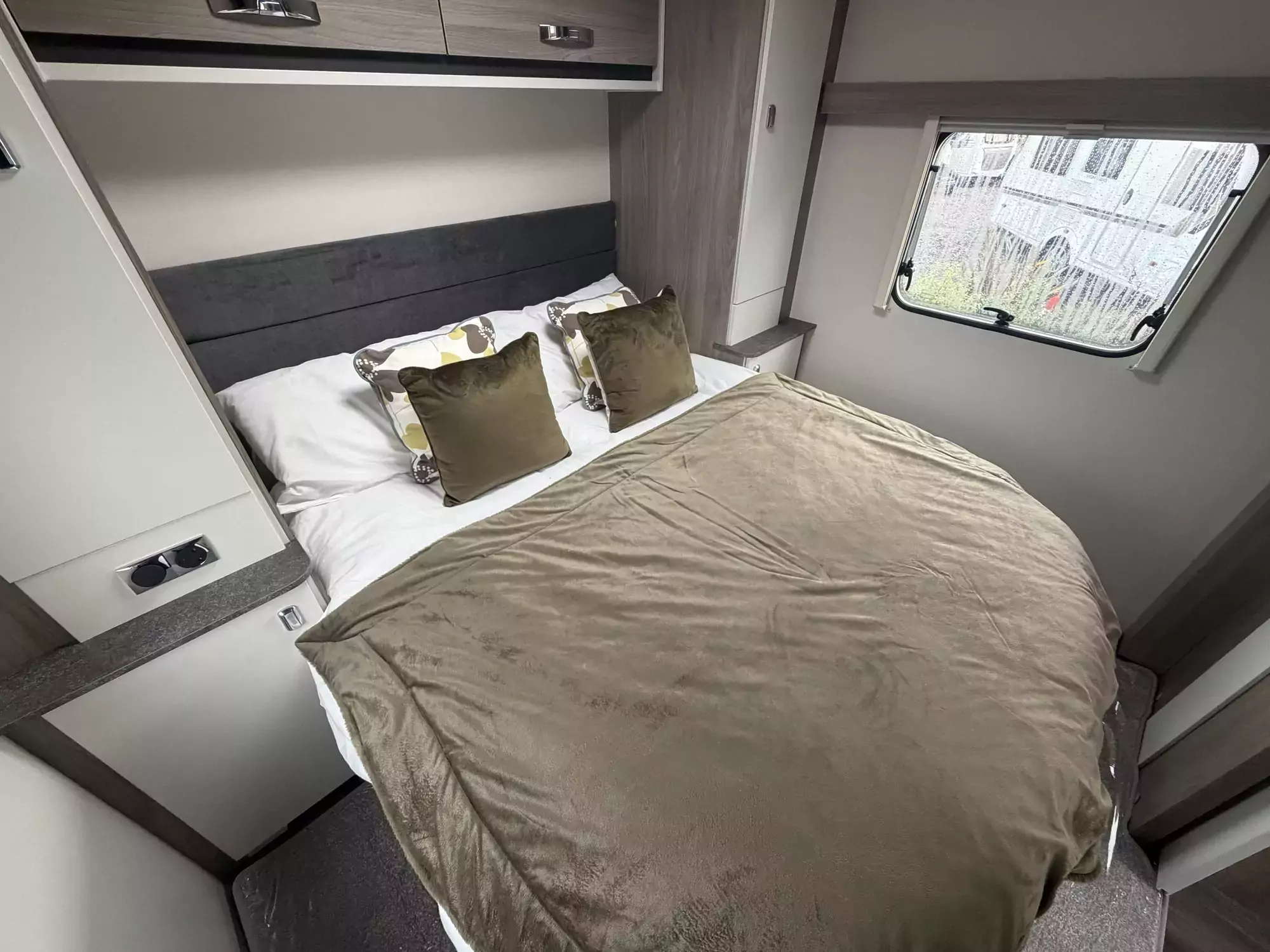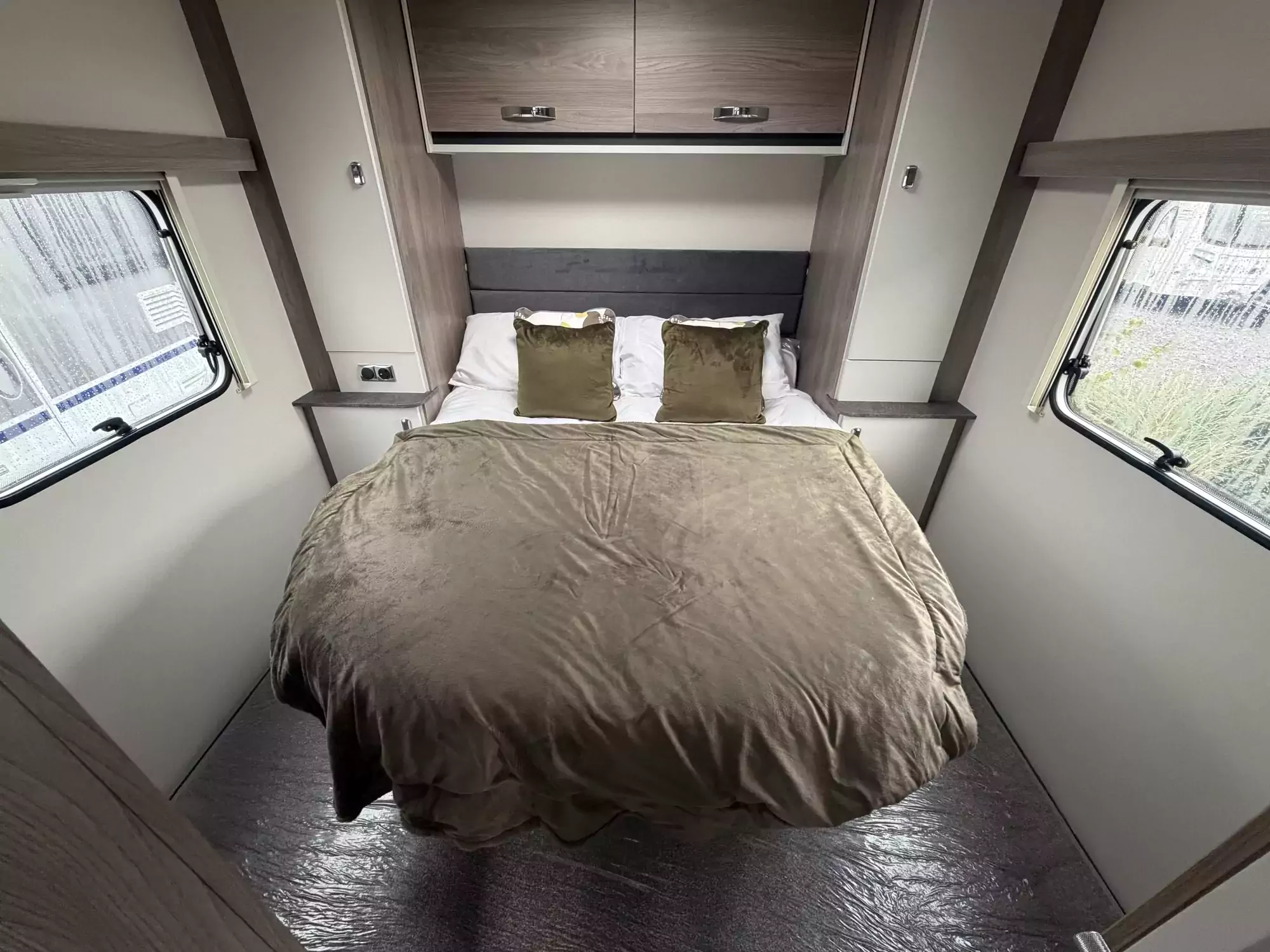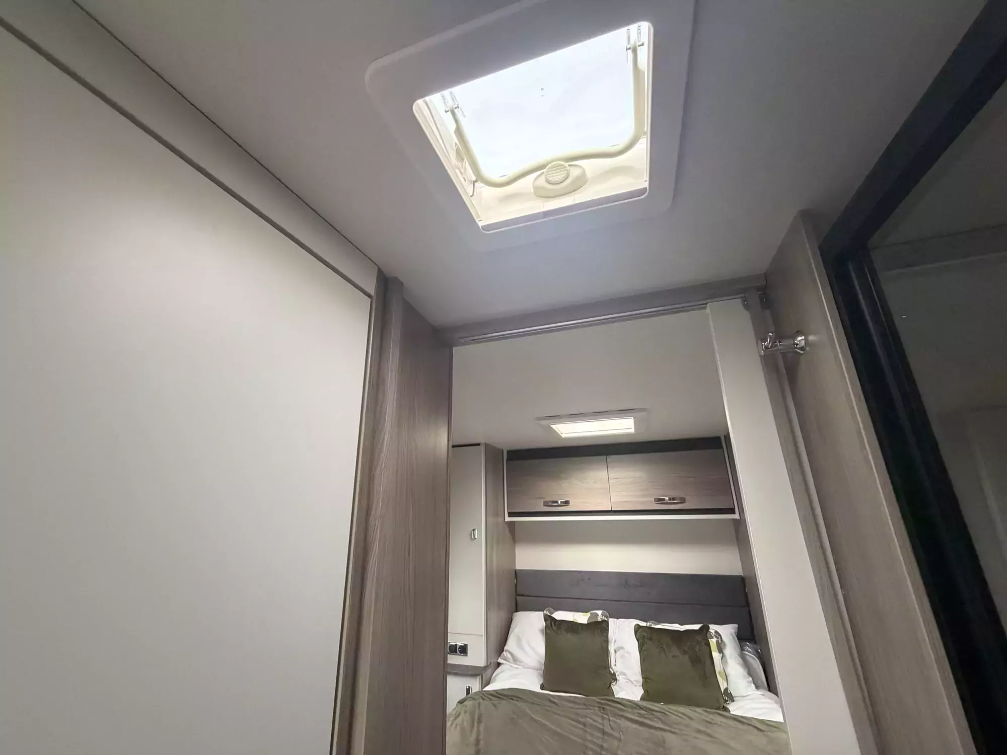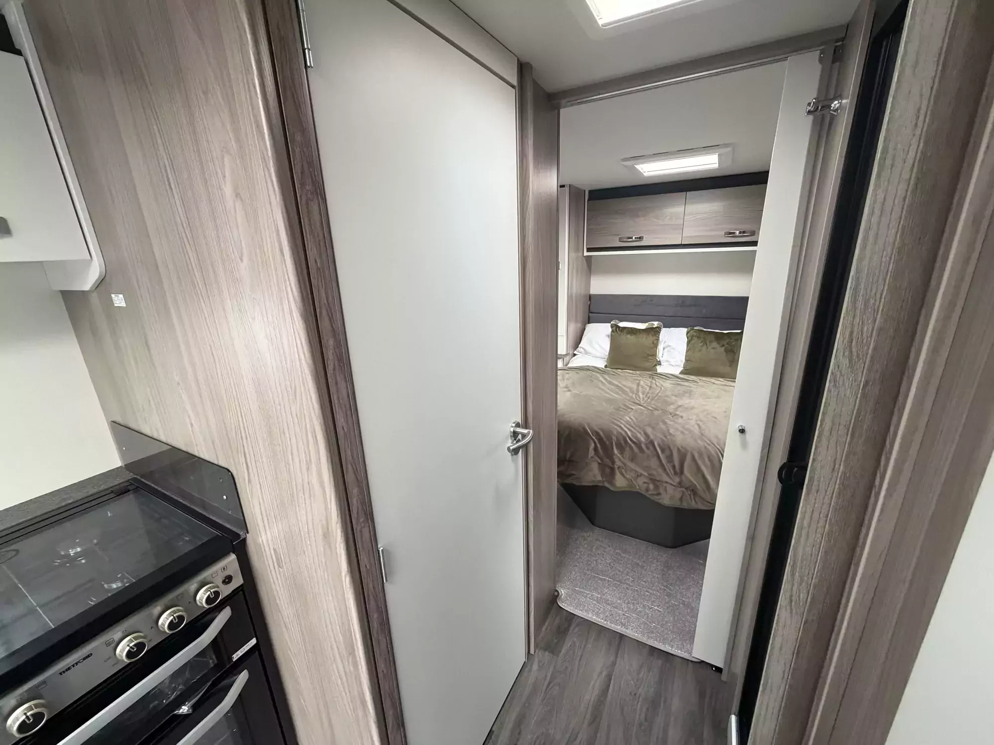 At the heart of this model is the stunning rear island bed with walk-around access, creating a true bedroom-style retreat. Paired with generous wardrobes and clever storage solutions, it offers the comfort of home wherever you go. At the front, the large panoramic lounge features comfortable parallel seating that converts into another spacious double bed, allowing the caravan to sleep up to four people with ease.