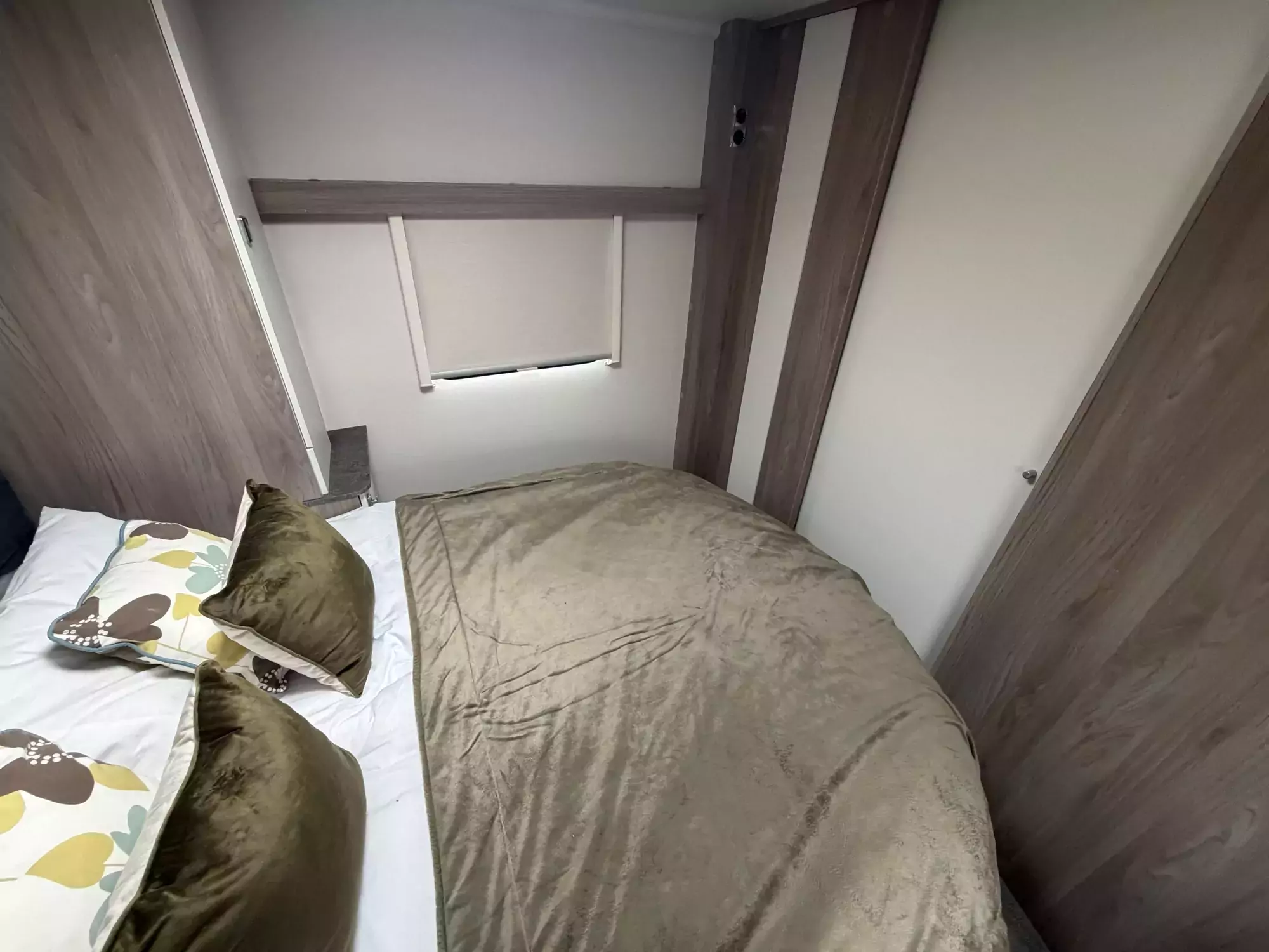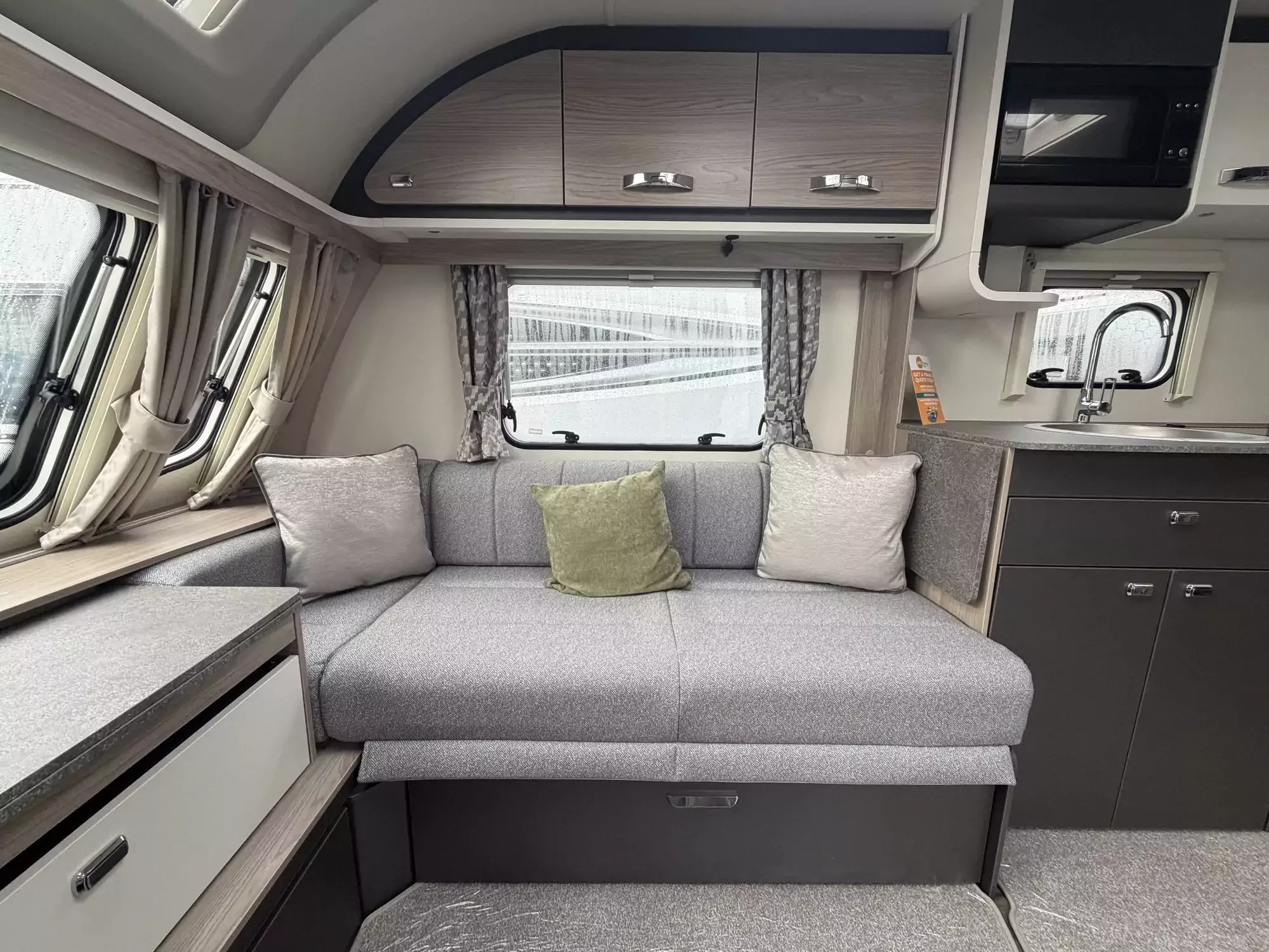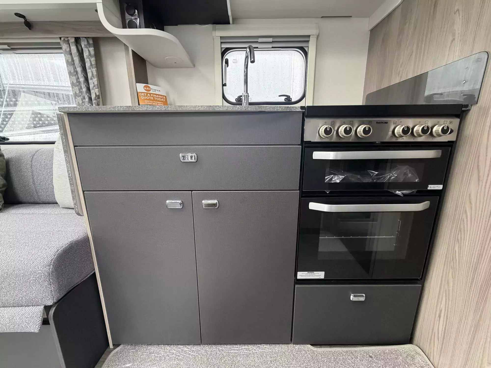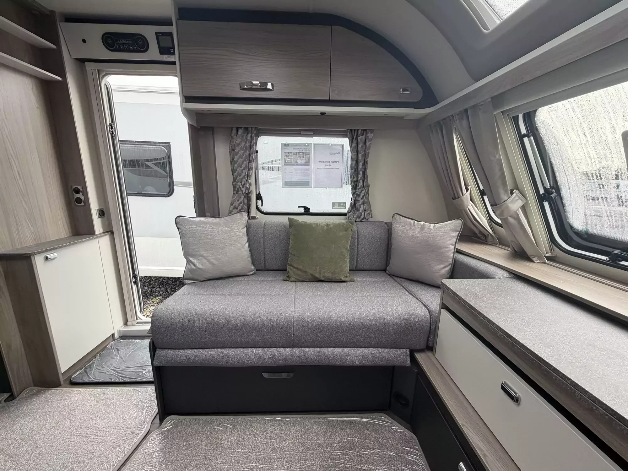 At the heart of this model is the stunning rear island bed with walk-around access, creating a true bedroom-style retreat. Paired with generous wardrobes and clever storage solutions, it offers the comfort of home wherever you go. At the front, the large panoramic lounge features comfortable parallel seating that converts into another spacious double bed, allowing the caravan to sleep up to four people with ease.