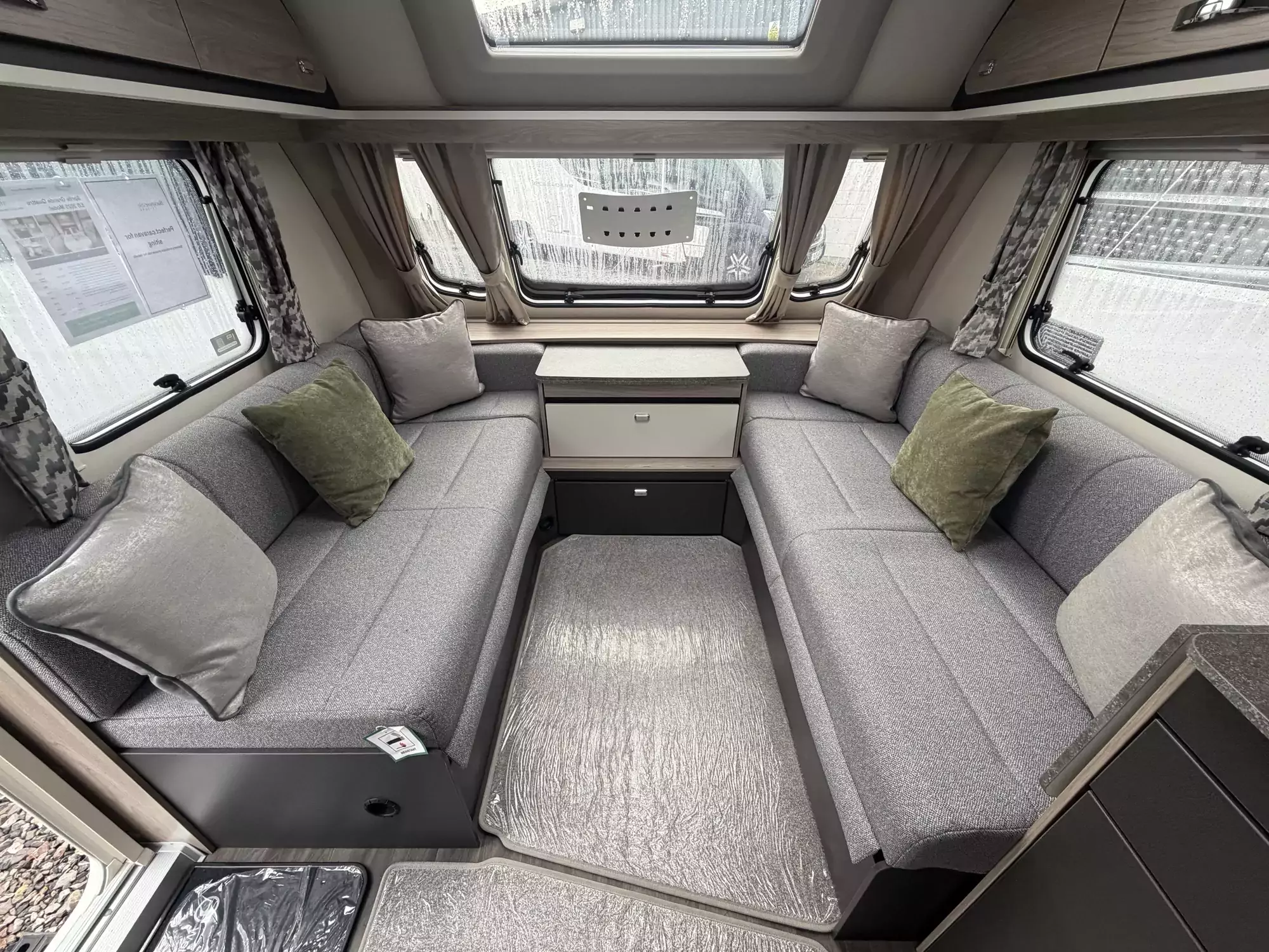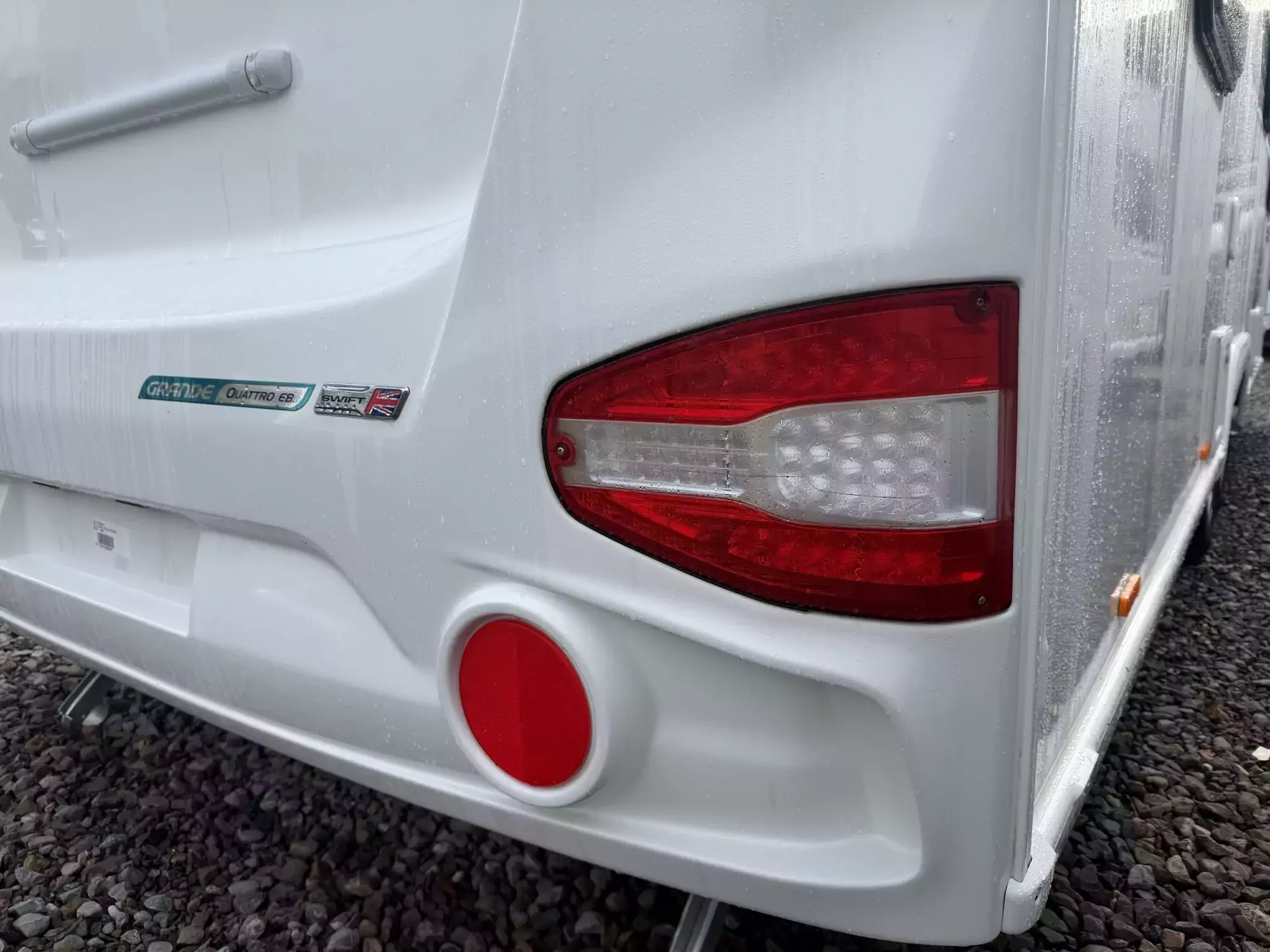 Built using Swift’s proven SMART construction, the Challenger Quattro Grande EB 2025 combines durability, thermal efficiency, and modern styling. With its bold exterior graphics, wide-body stability, and high-end interior touches, this caravan is designed for those who refuse to compromise on space or comfort.