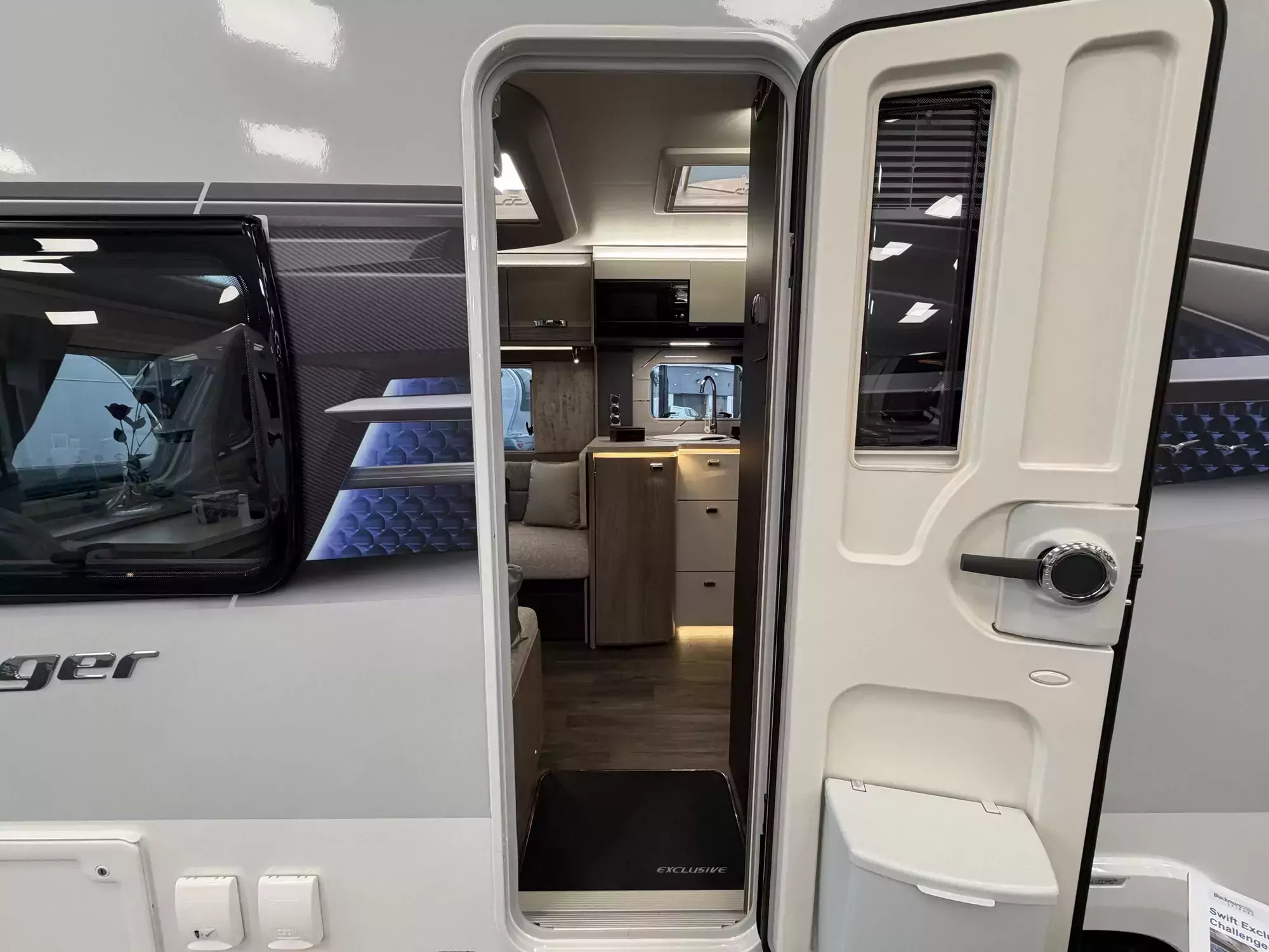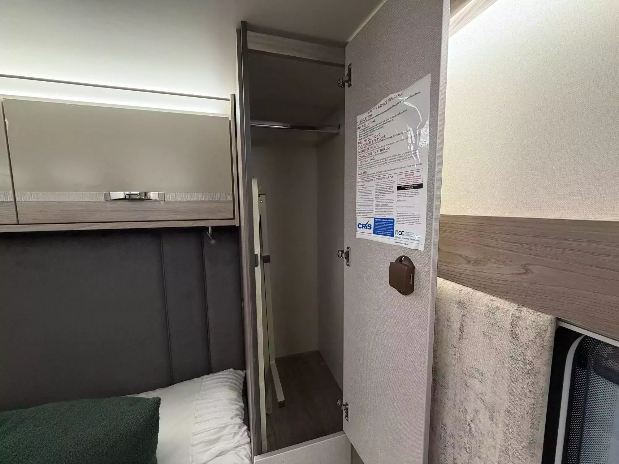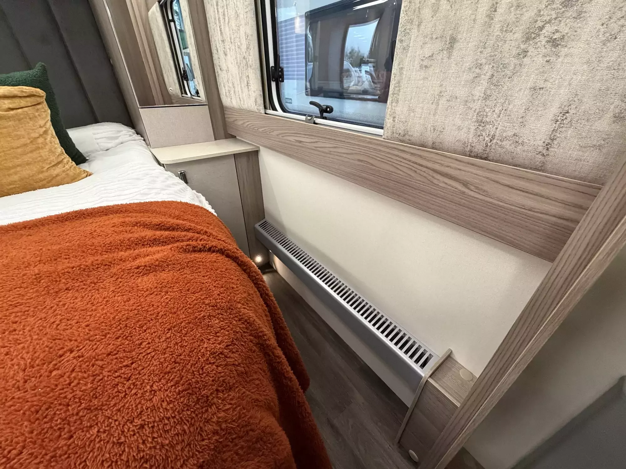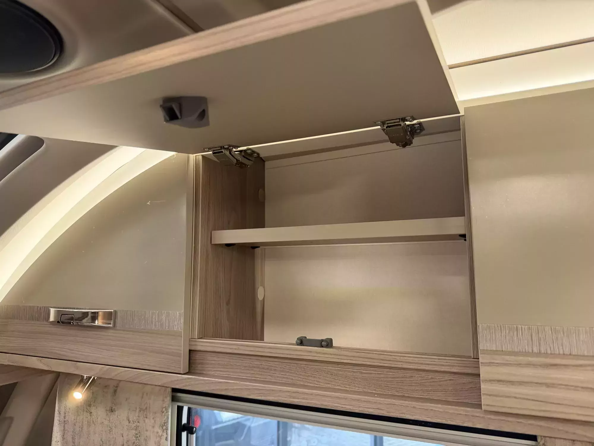 One of the key highlights of the Challenger 560 is its fixed island bed located at the rear, offering a comfortable and private sleeping area. The bed is surrounded by plenty of storage space, including overhead lockers and wardrobes on both sides, making it easy to keep the interior organized. This fixed-bed layout ensures convenience, allowing you to relax without having to reconfigure the space each night.