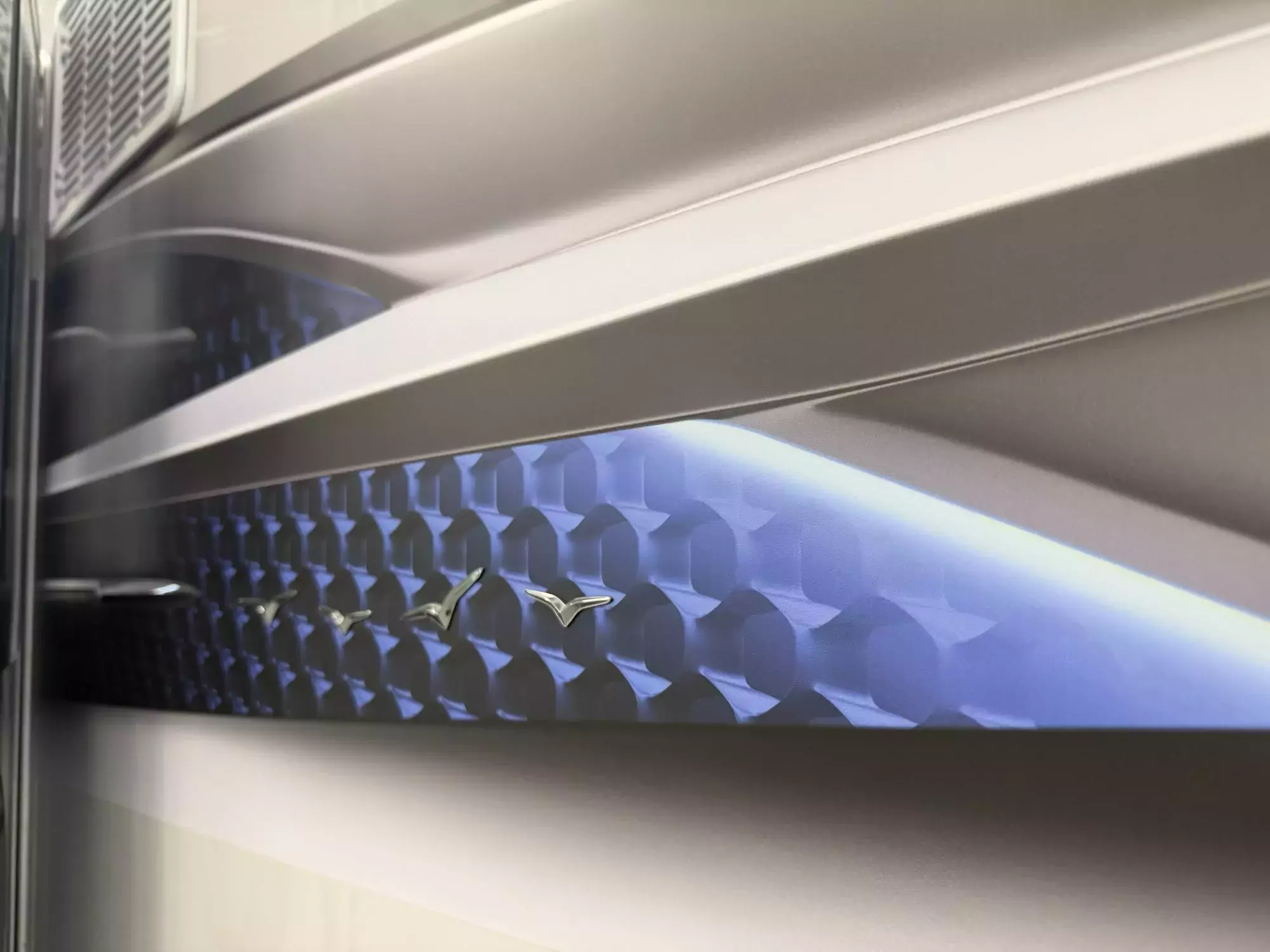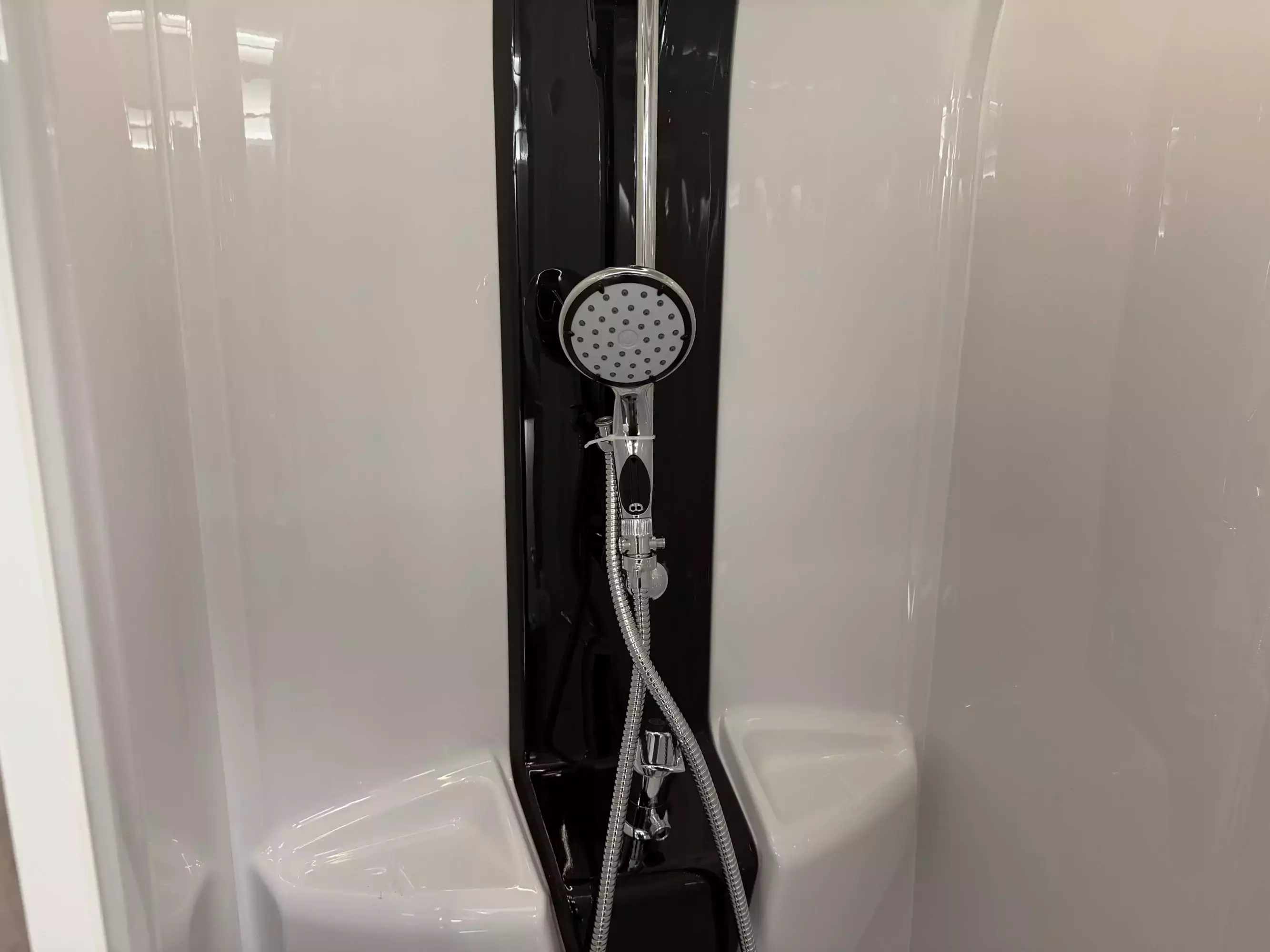 The central washroom in the Challenger 560 is another highlight, offering a separate shower cubicle, toilet, and washbasin. The washroom's design maximizes space and privacy, ensuring that you have all the comforts of home while on the road.