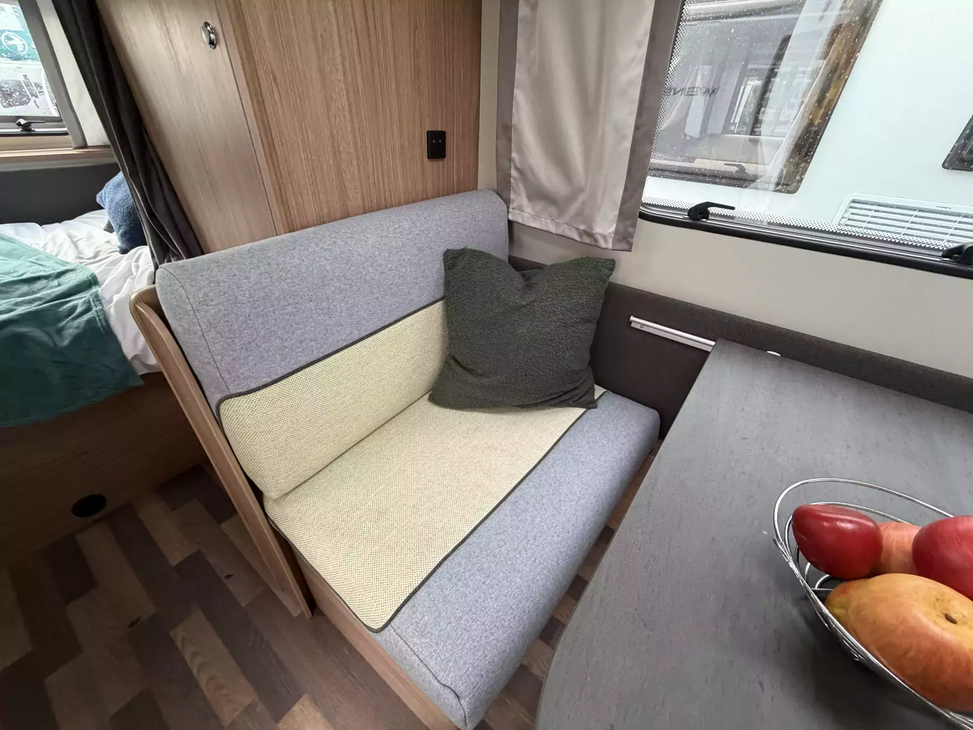 Inside, the 390QD makes the most of its compact footprint. The front fixed double bed and rear small dinette, which can convert into an additional bed, offer comfortable sleeping for the whole family. Smart under-bed storage, accessible from both inside and outside, keeps all your holiday essentials organised and within reach.