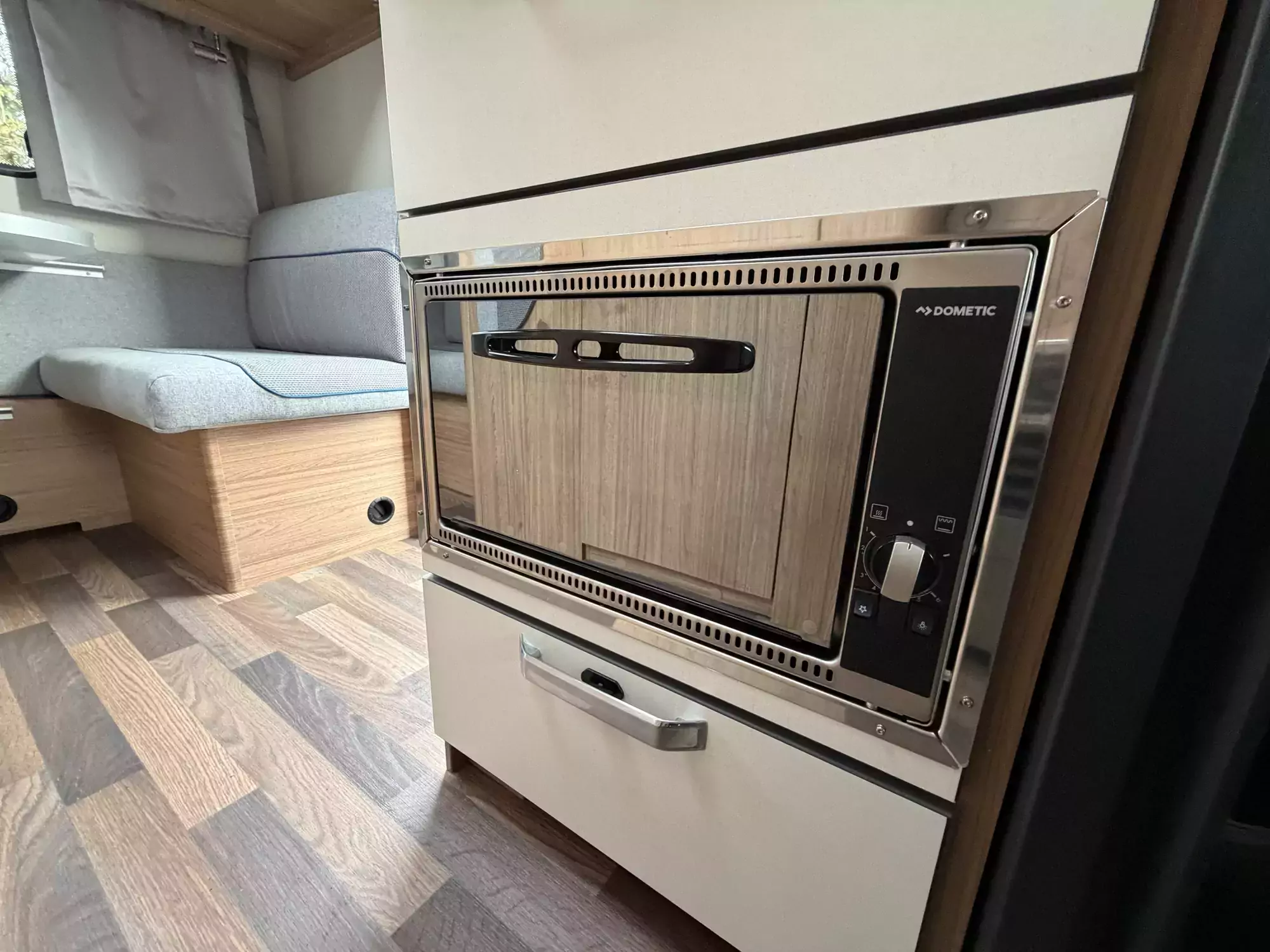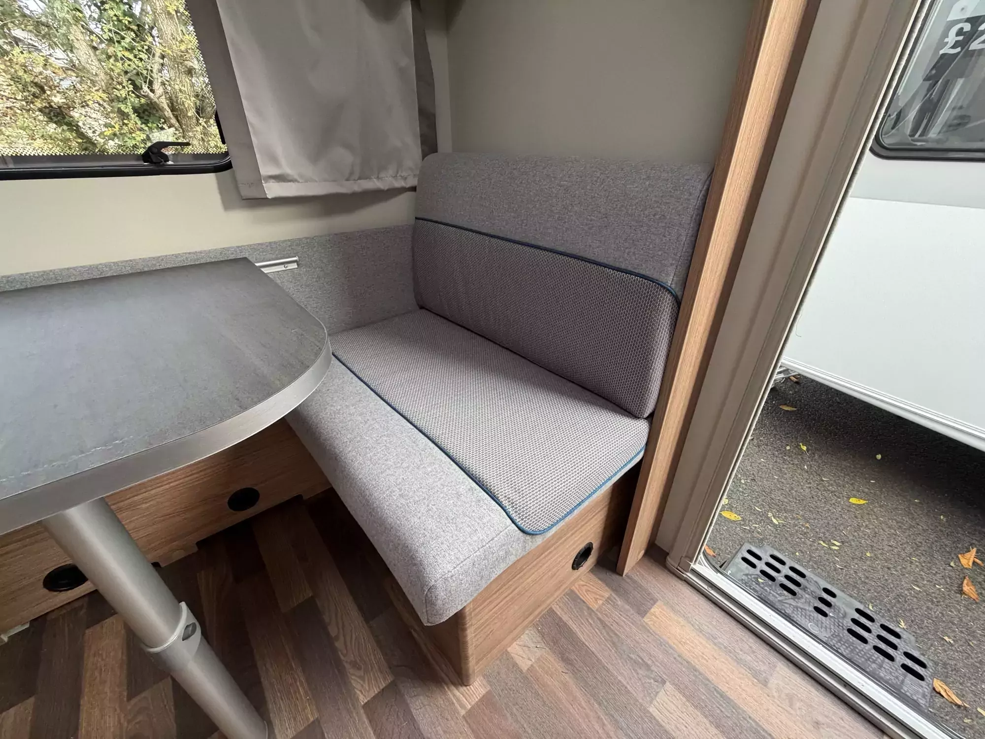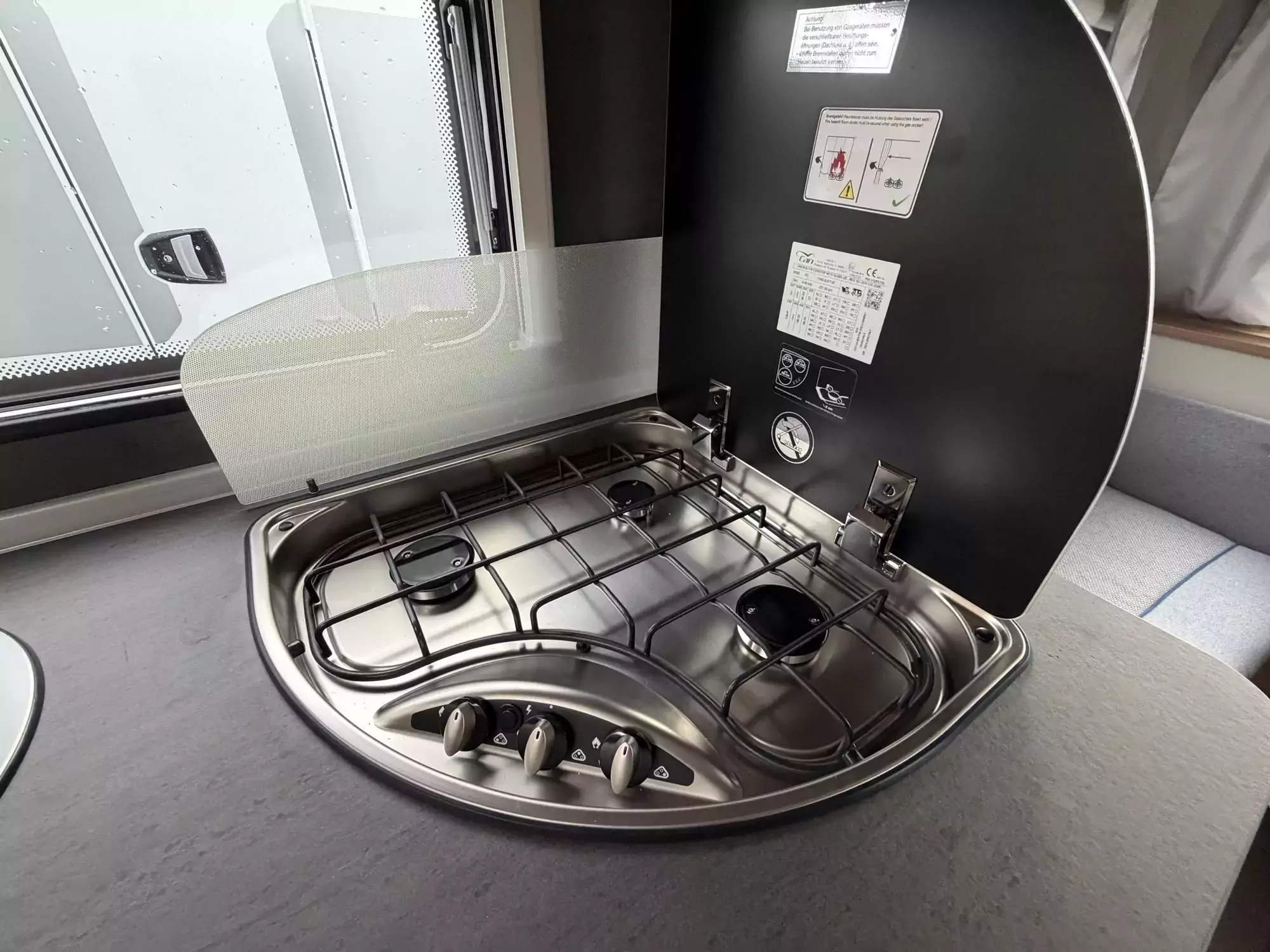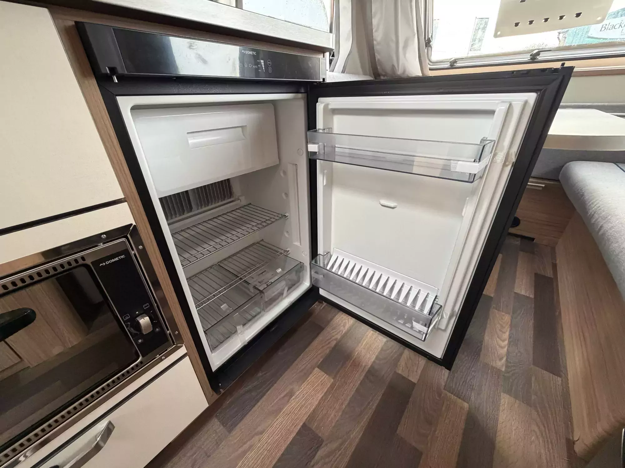 The UK model comes complete with Gas hob , sink and refrigerator. And finishing off the must haves is a small washroom, ideal for rinsing off sandy toes in the shower, brushing teeth in the wash basin, and meaning no need for trawling across the campsite in the middle of the night if you are caught short with the cassette toilet.