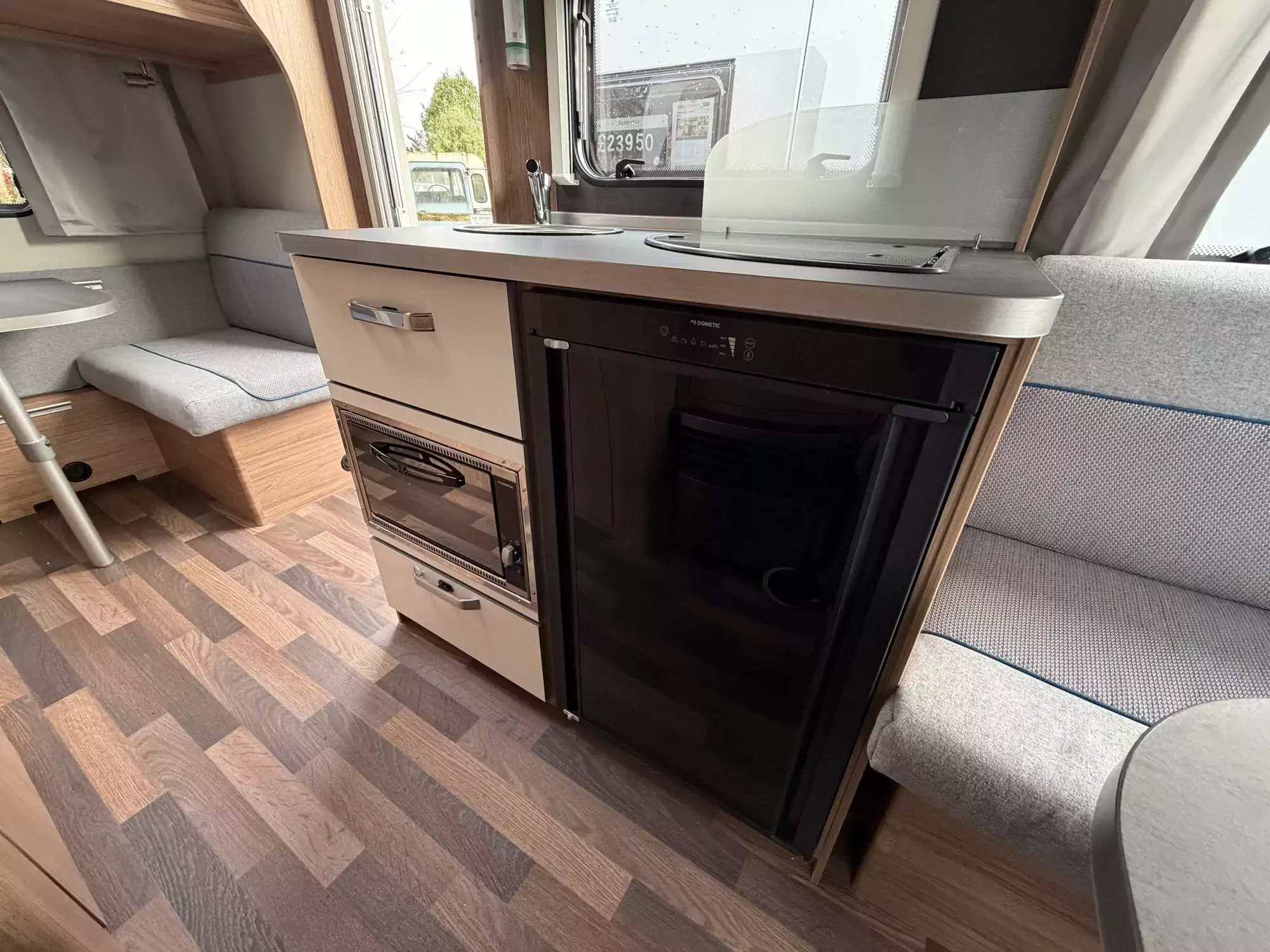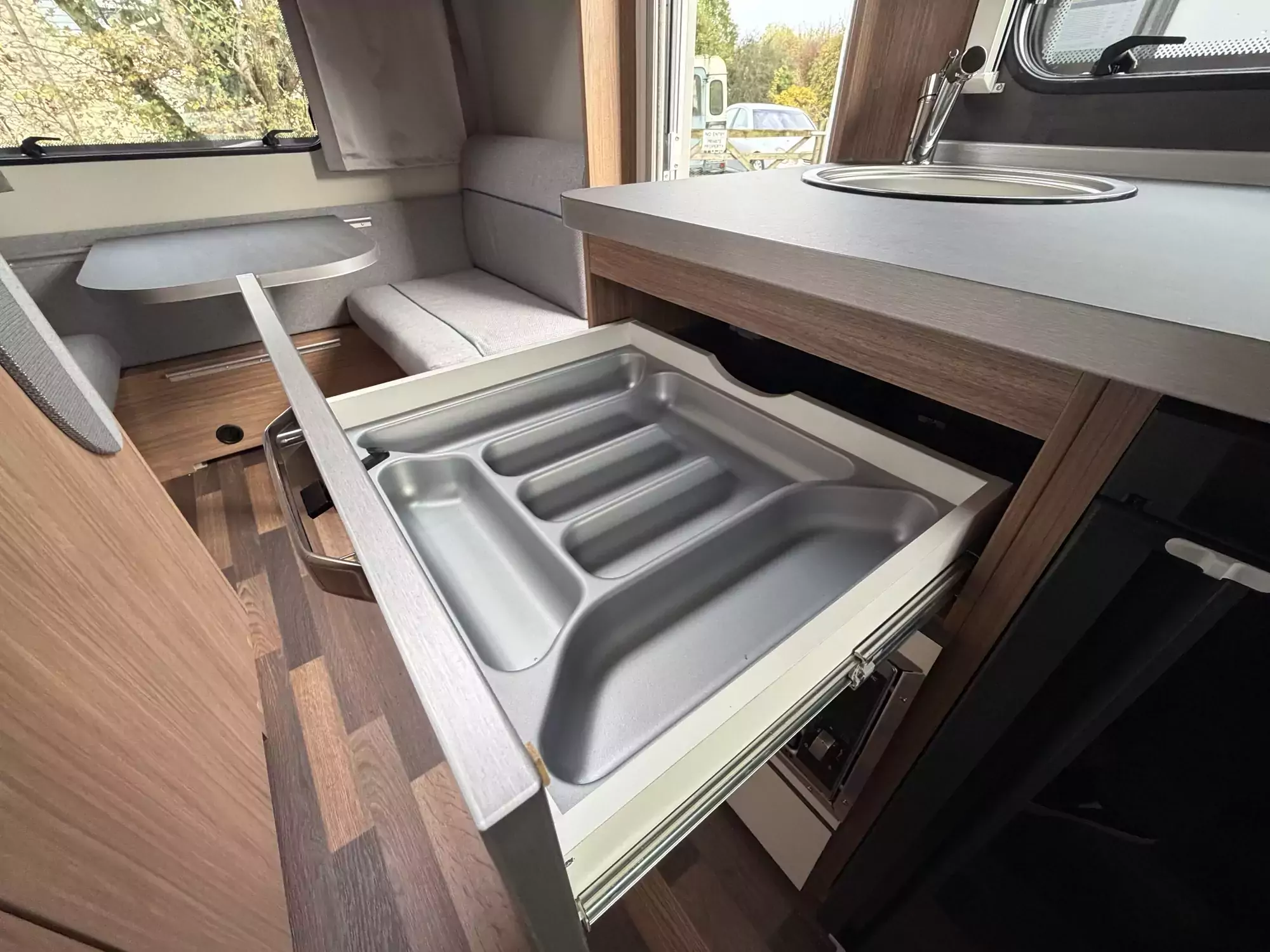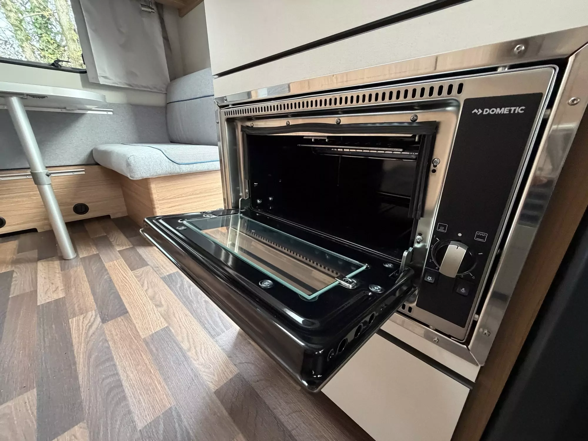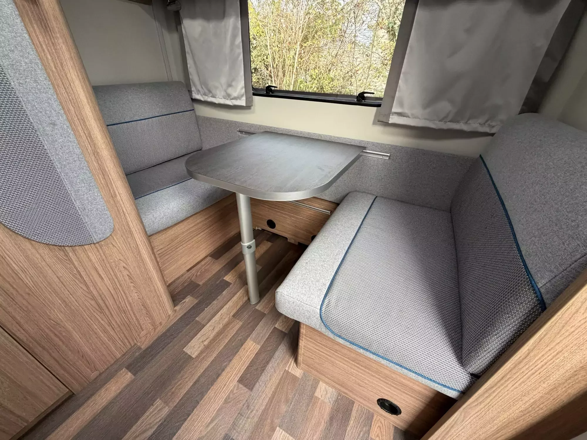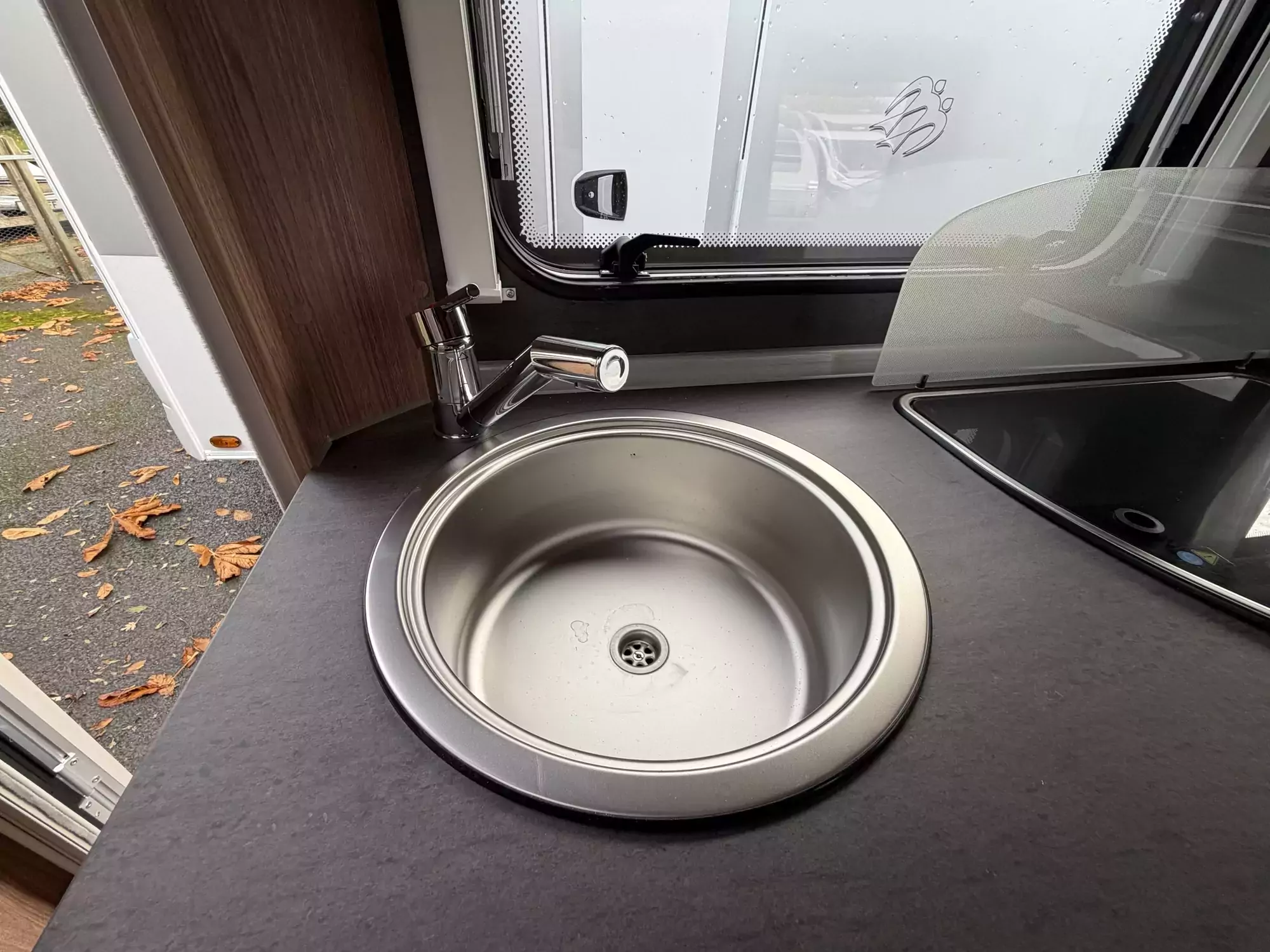 The UK model comes complete with Gas hob , sink and refrigerator. And finishing off the must haves is a small washroom, ideal for rinsing off sandy toes in the shower, brushing teeth in the wash basin, and meaning no need for trawling across the campsite in the middle of the night if you are caught short with the cassette toilet.