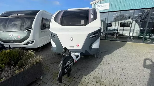 A rare opportunity to acquire this pre-loved 2021 Swift Basecamp 4 four berth sporty lightweight caravan. Exciting, sporty, fun and stylish the Basecamp is the compact crossover camping vehicle created for life’s adventurers. Whether you’re seeking adrenaline-fuelled activities or just enjoy getting off the beaton track, Basecamp is the perfect place to rest and refuel. Compact and lighter in weight than traditional caravans, this can be be towed by most family cars and it is easier to manoeuvre. The Swift Basecamp 4 has been cleverly designed to maximise and retain the compact ethos of Basecamp, while ensuring its functionality for family life on the road.