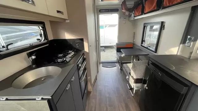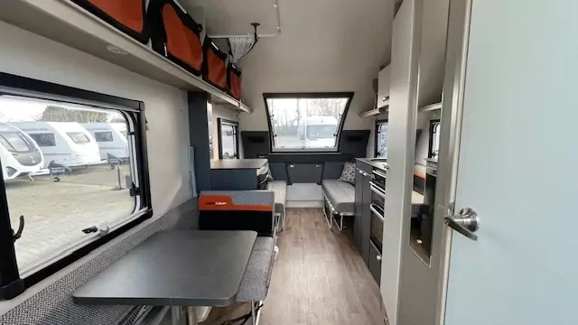 The Basecamp 4 boasts the optimised layout of a side dinette which can be converted into bunk beds, a foldaway table, larger kitchen surface space and additional storage, meaning you next adventure is robust and ready when you are.