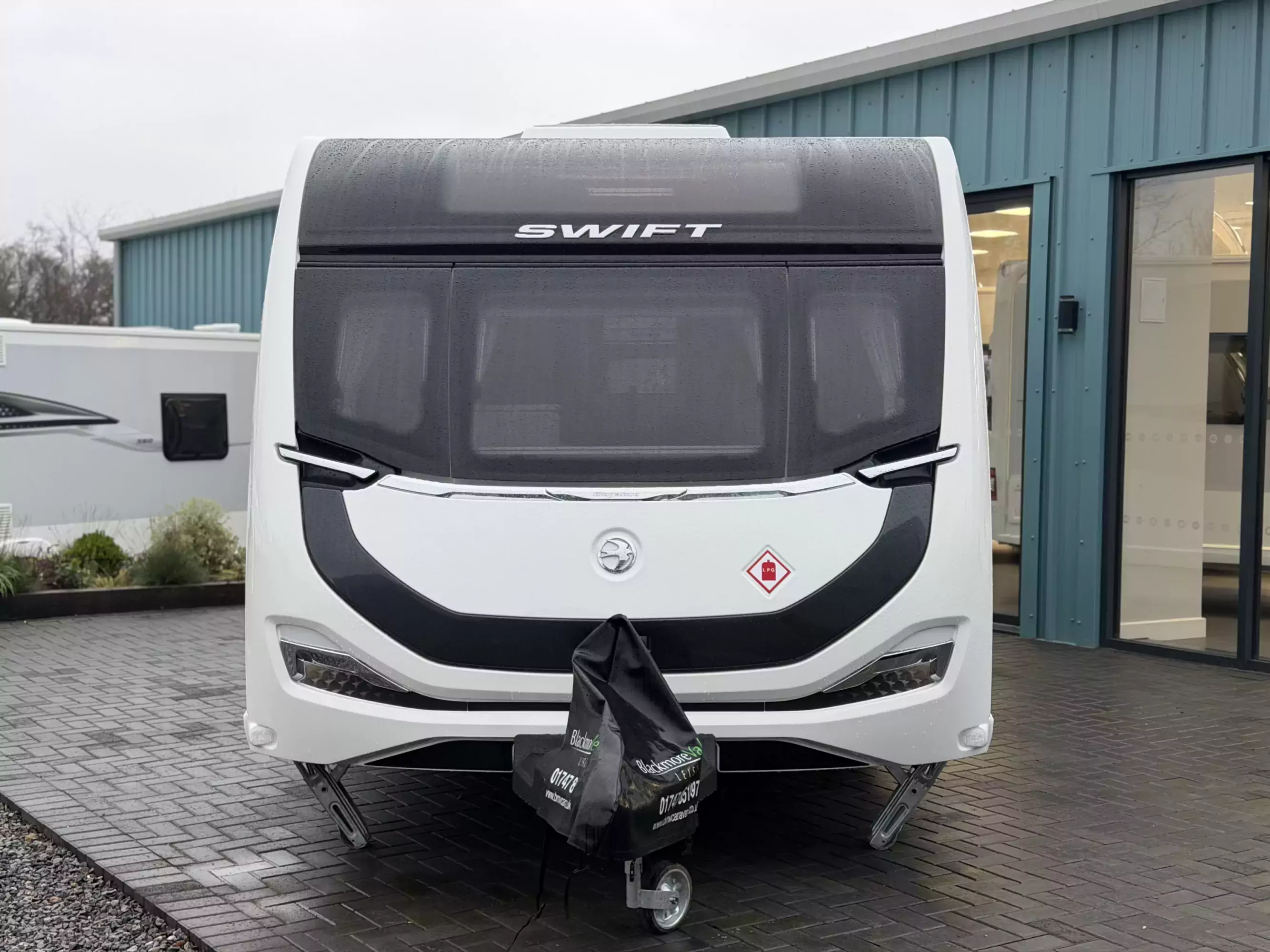 Designed for touring and family trips, the Swift Elegance 780 features an intelligently planned interior layout with a comfortable front lounge that easily converts into sleeping space and a fixed transverse island double bed at the rear, making it a true 4-berth caravan. The well-equipped kitchen includes a gas hob, sink and refrigerator to support family meal preparation on the road, while the end washroom offers a shower, cassette toilet and wash basin for everyday convenience. Storage is abundant throughout with overhead lockers, wardrobes and exterior lockers to accommodate luggage for holiday breaks or longer touring adventures. Built to high standards with robust construction and premium fittings, this 2025 model caters perfectly to those seeking a durable, easy-towing caravan for holidays, couples getaways, family trips and touring lifestyles.