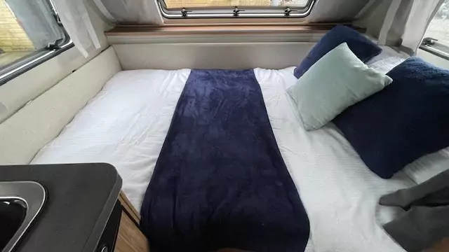 Inside, the 390QD makes the most of its compact footprint. The front fixed double bed and rear small dinette, which can convert into an additional bed, offer comfortable sleeping for the whole family. Smart under-bed storage, accessible from both inside and outside, keeps all your holiday essentials organised and within reach.