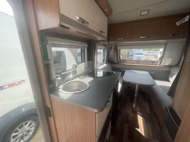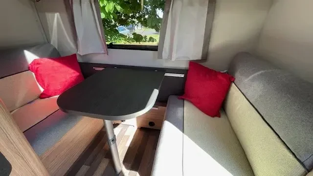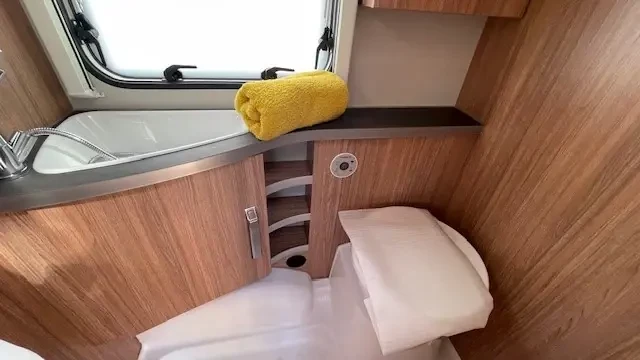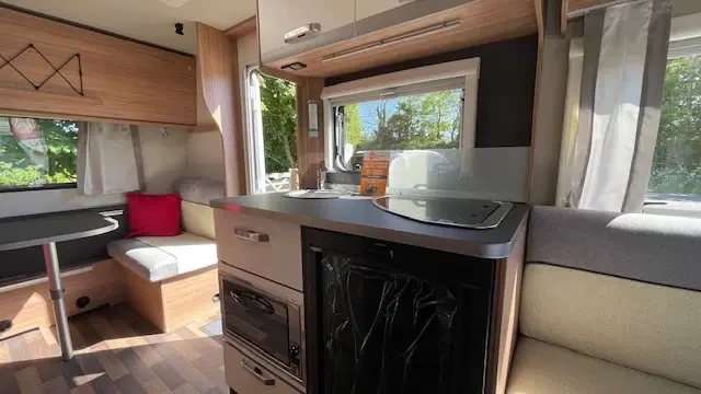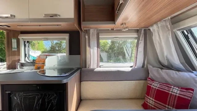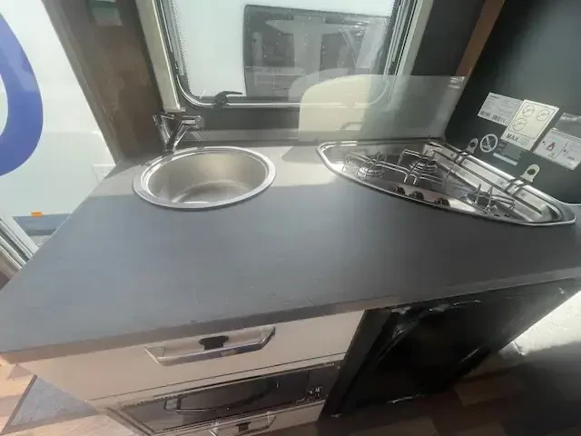 New for 2024 the Gas oven becomes a standard feature in the kitchen block along with the already resent Gas hob, sink and refrigerator. And finishing off the must haves is a small washroom, ideal for rinsing off sandy toes in the shower, brushing teeth in the wash basin, and meaning no need for trawling across the campsite in the middle of the night if you are caught short with the cassette toilet.